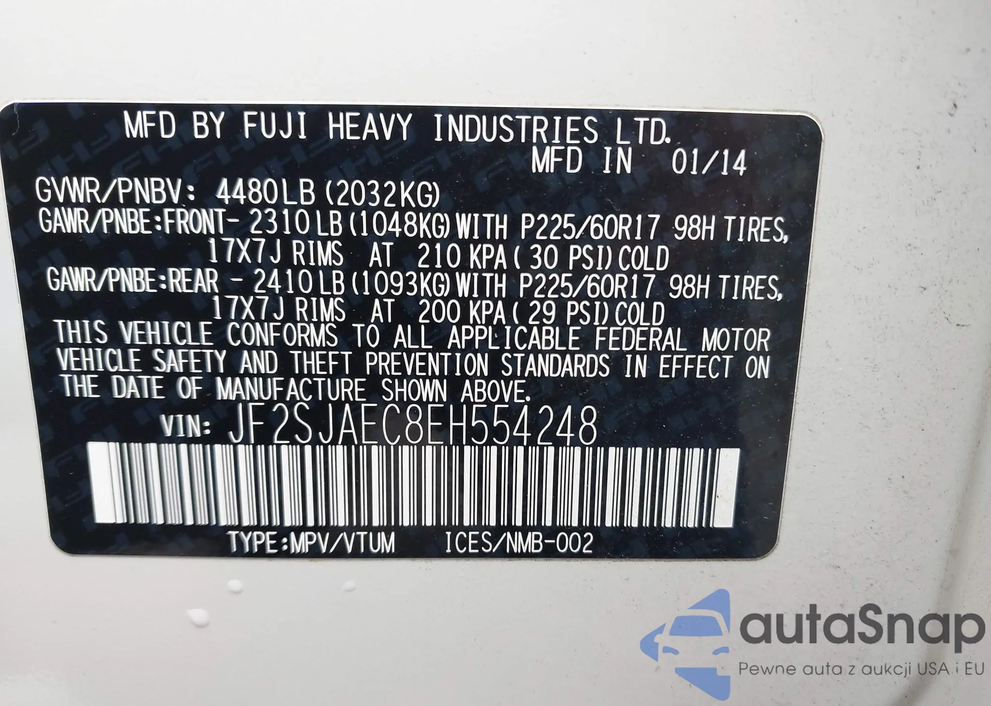 • VIN JF2SJAEC8EH554248
