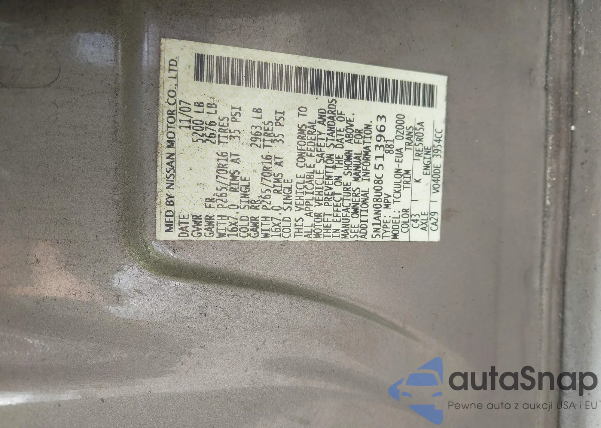 • VIN 5N1AN08U08C513963