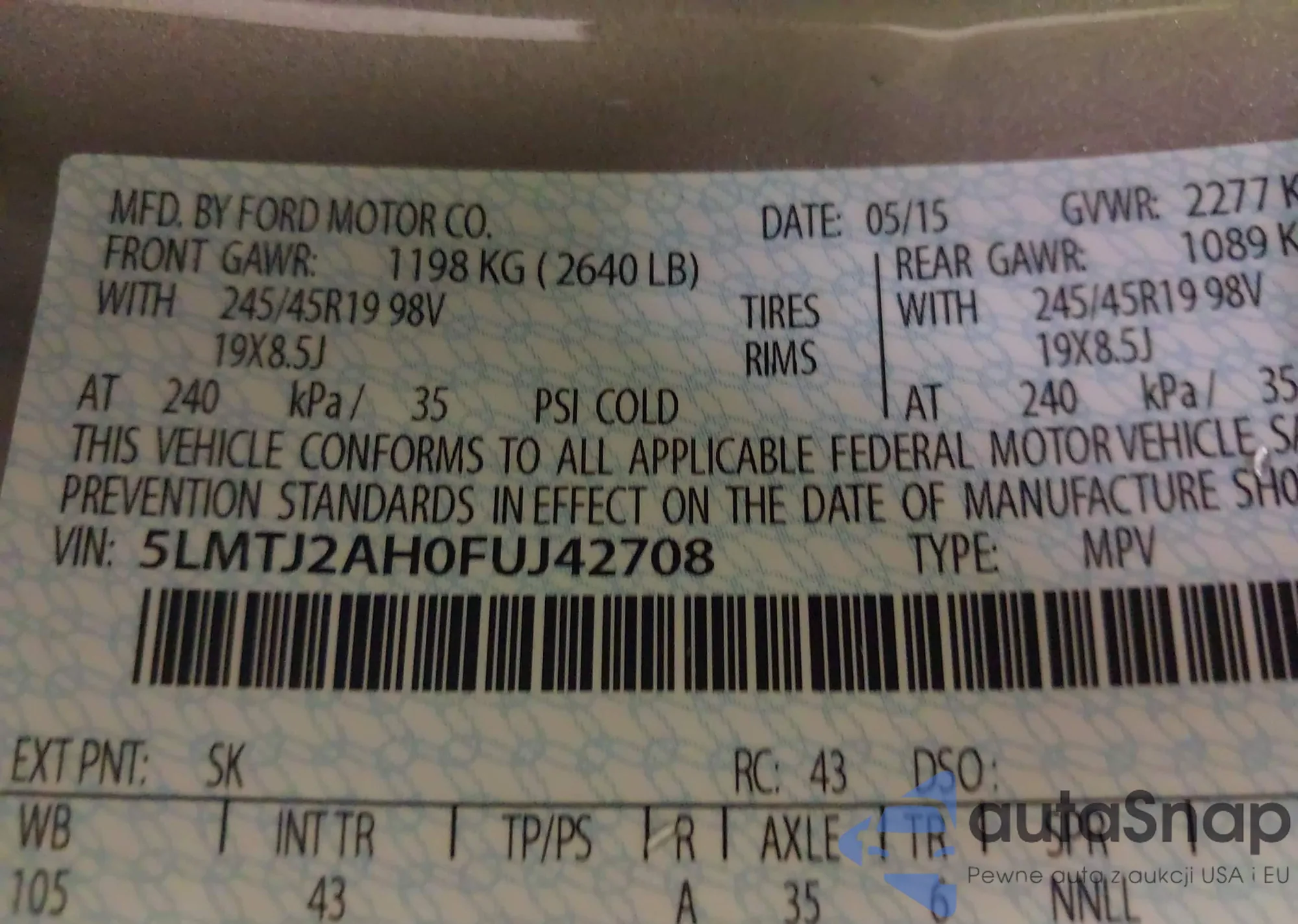 • VIN 5LMTJ2AH0FUJ42708