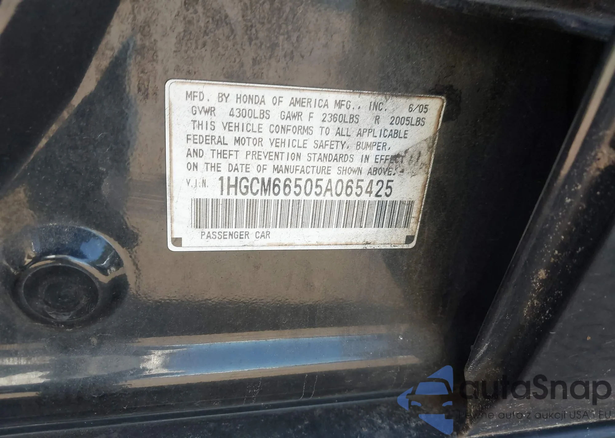 LOT: 43331515 VIN: 1HGCM66505A065425