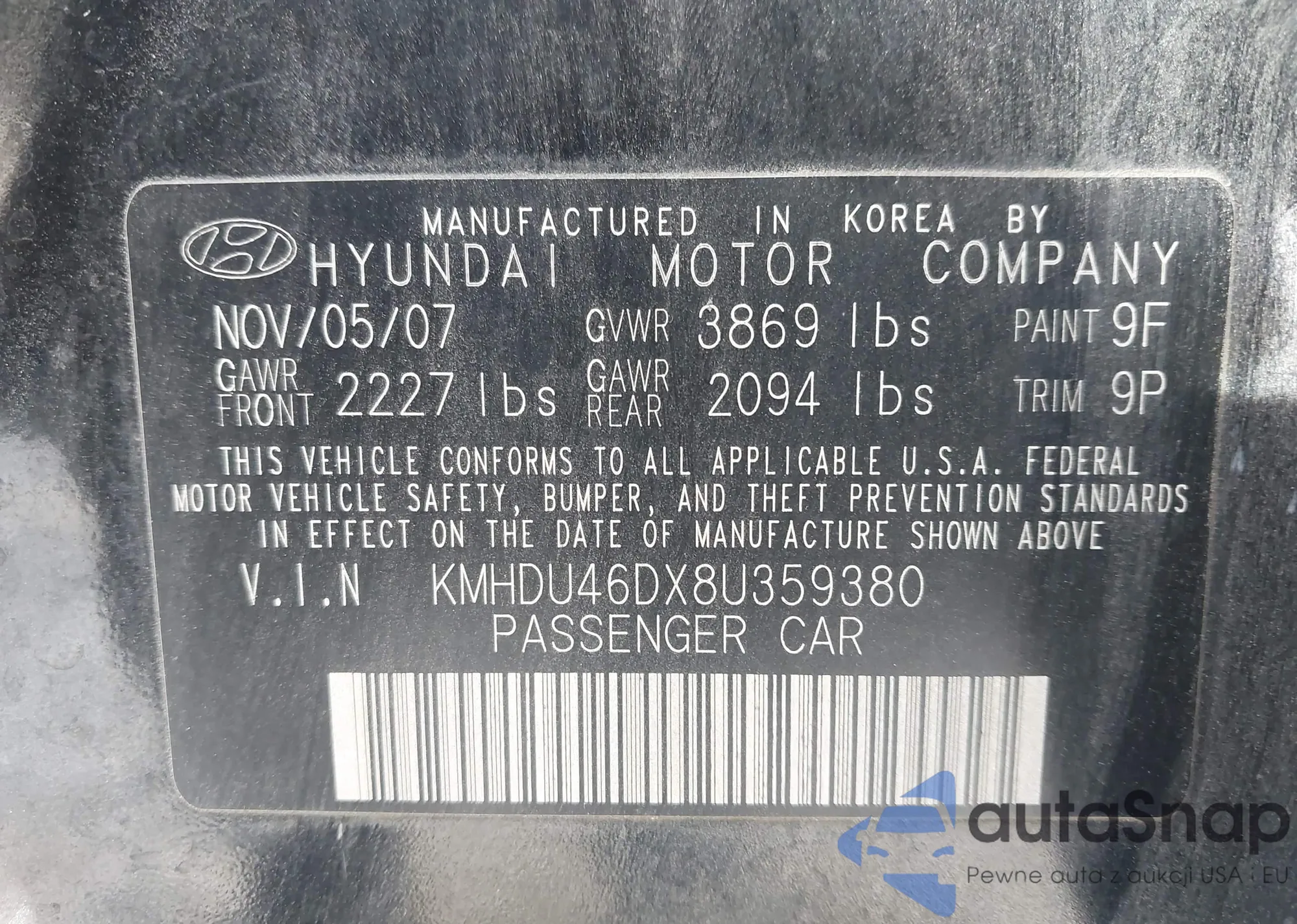 • VIN KMHDU46DX8U359380