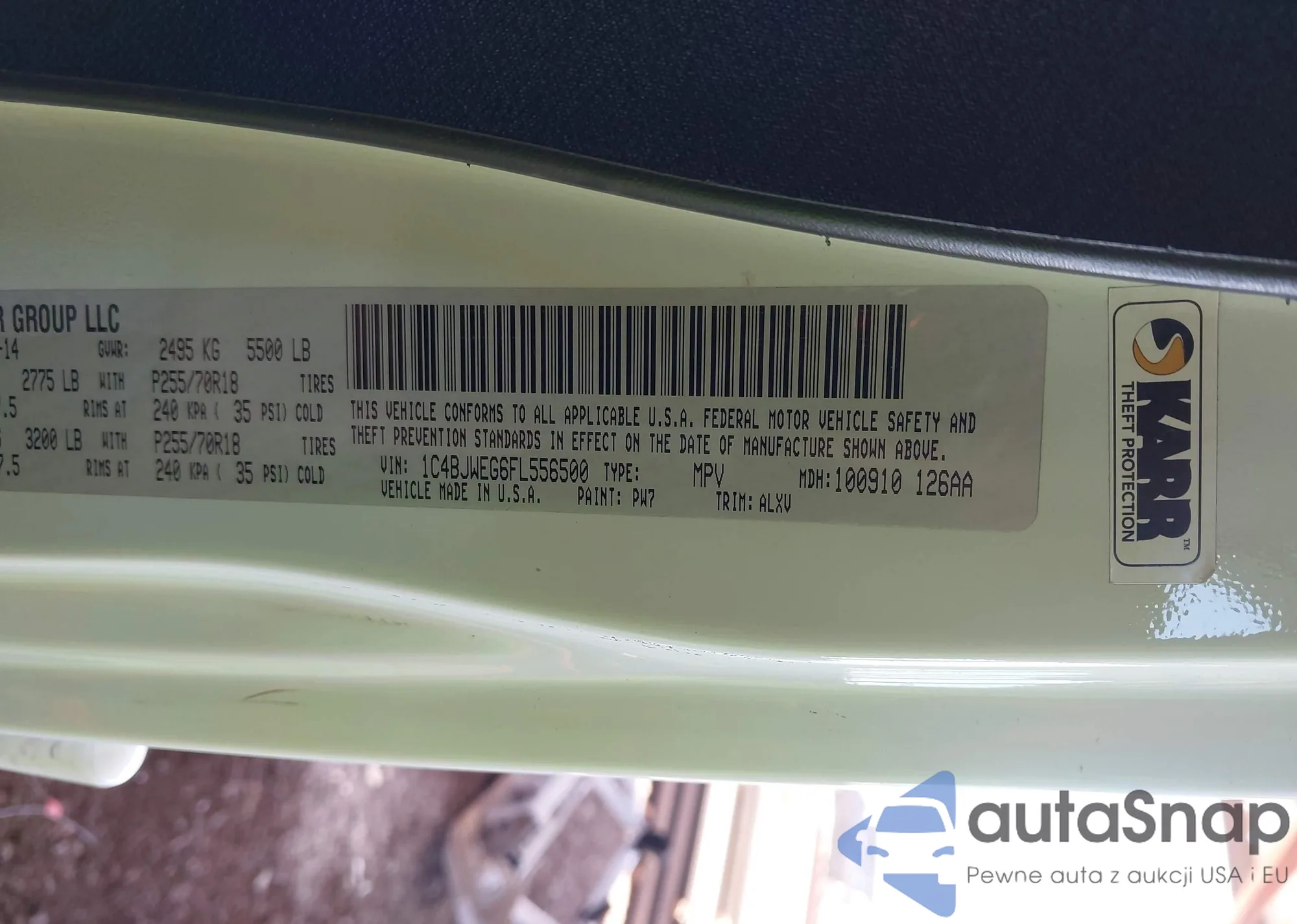 • VIN 1C4BJWEG6FL556500
