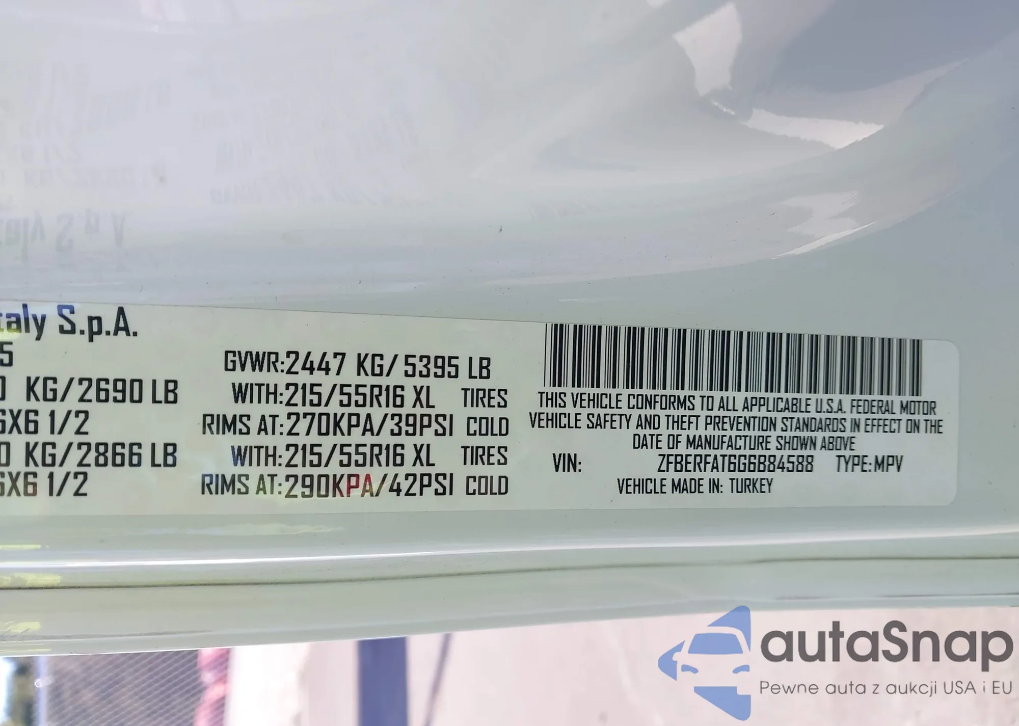 • VIN ZFBERFAT6G6B84588