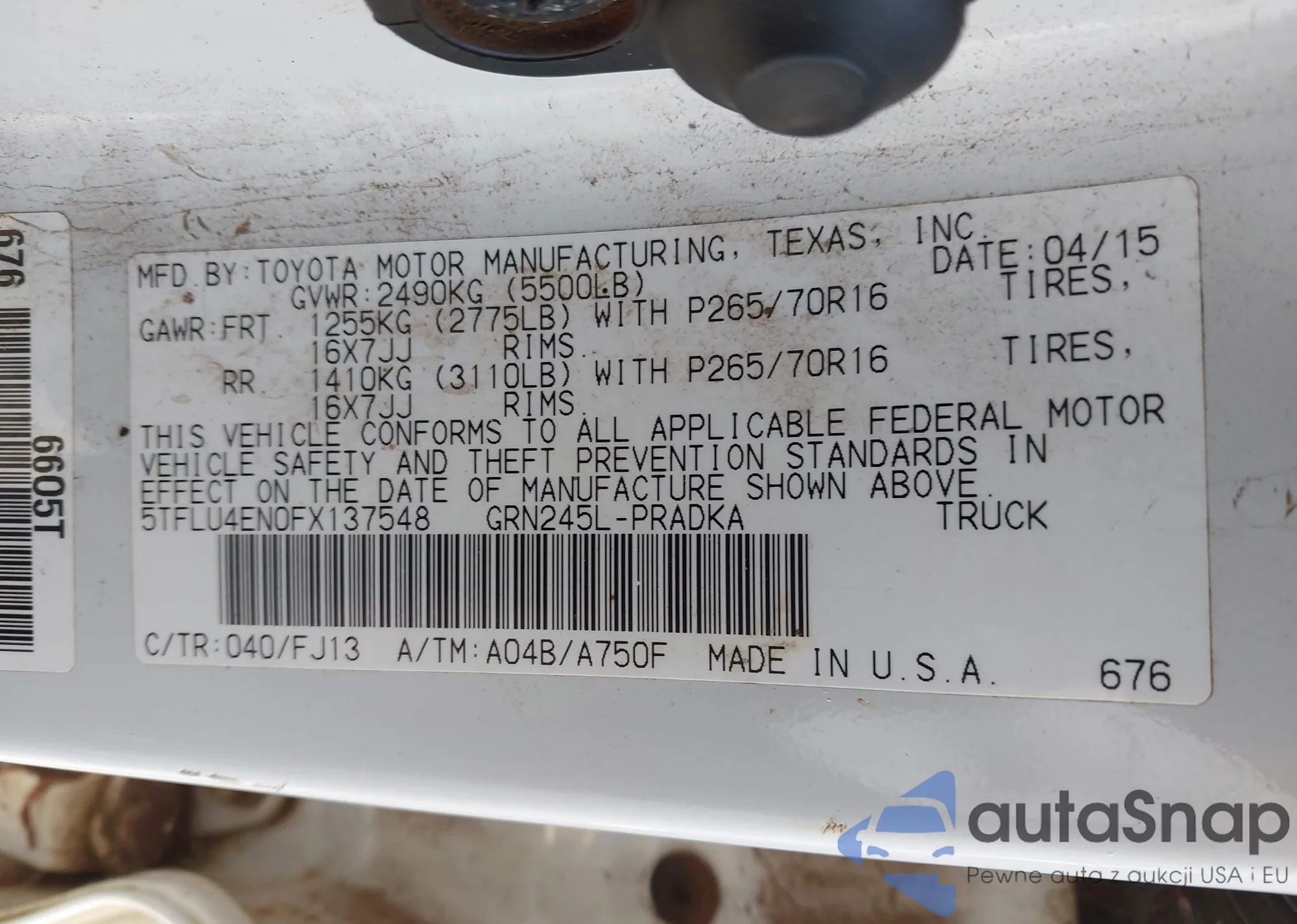 2015 Toyota Tacoma Base V6 from USA, damaged, VIN 5TFLU4EN0FX137548