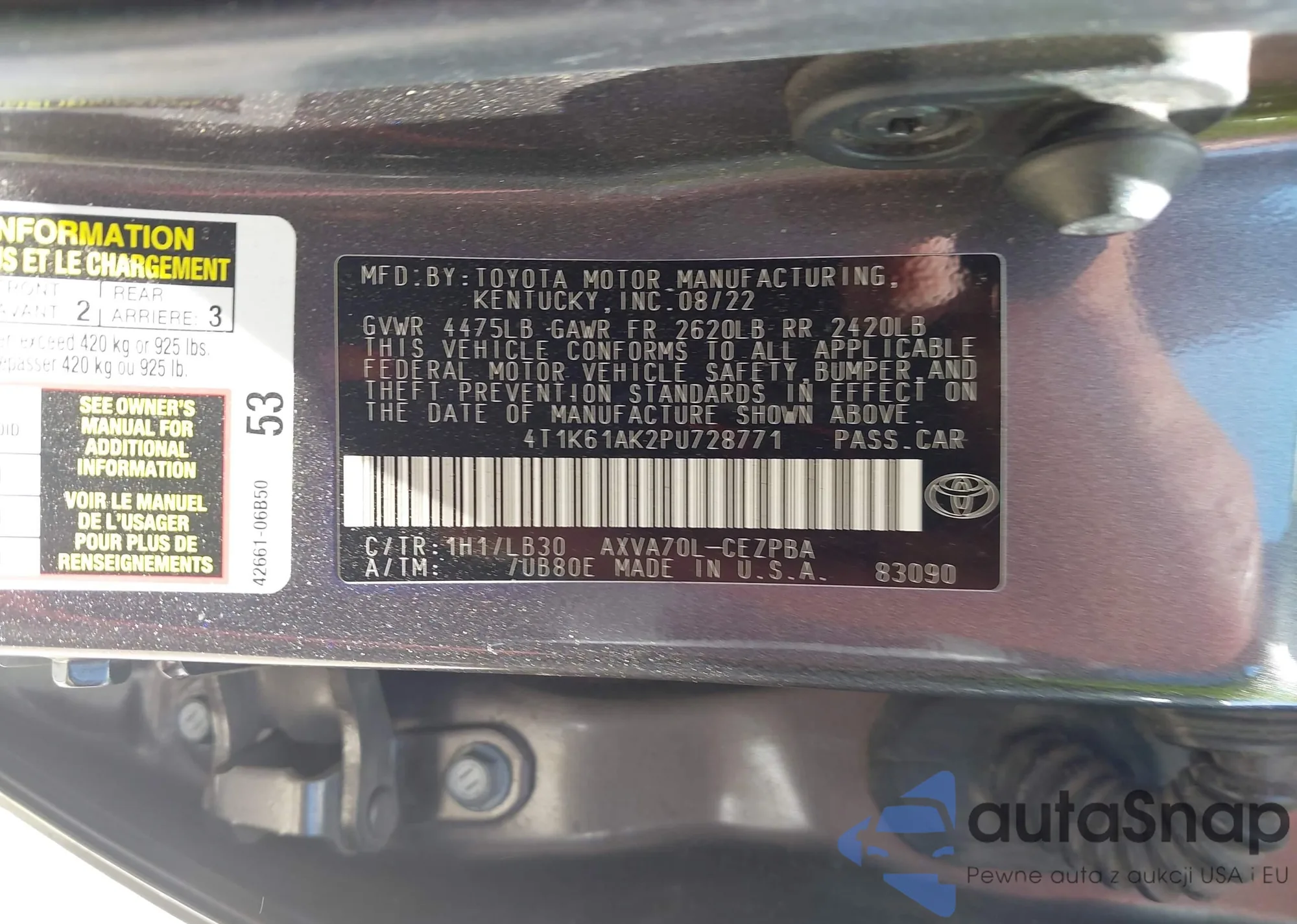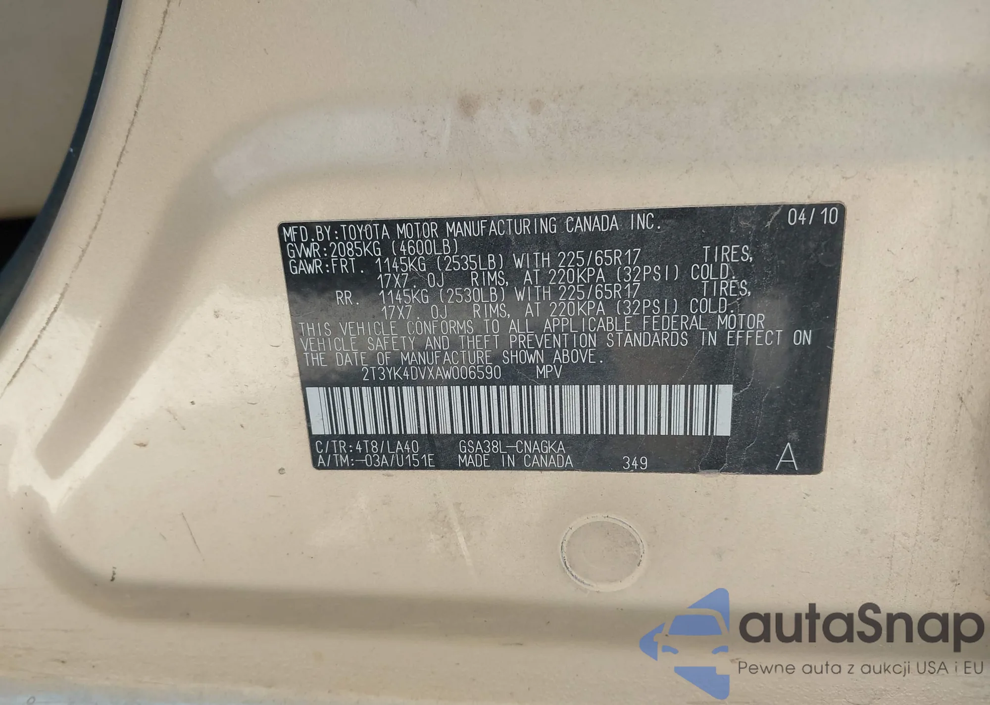 LOT: 43146460 VIN: 2T3YK4DVXAW006590