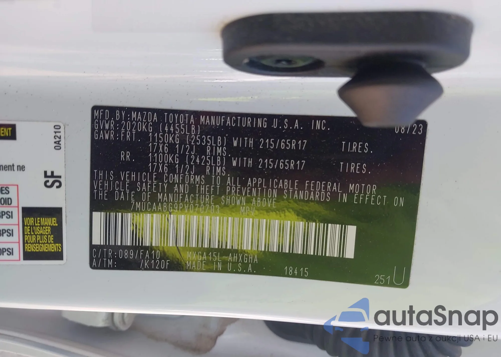 • VIN 7MUCAABG9PV070703