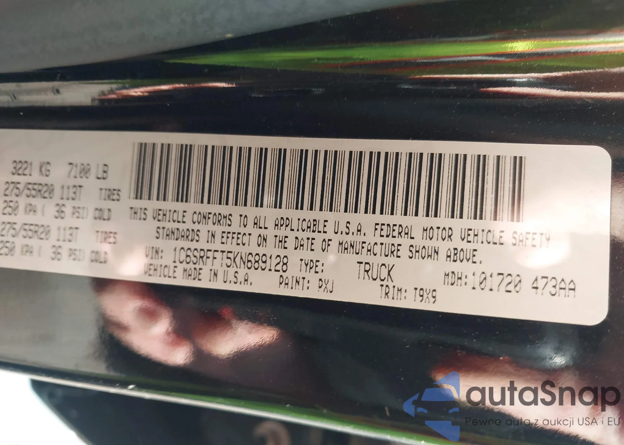 LOT: 43576785 VIN: 1C6SRFFT5KN689128