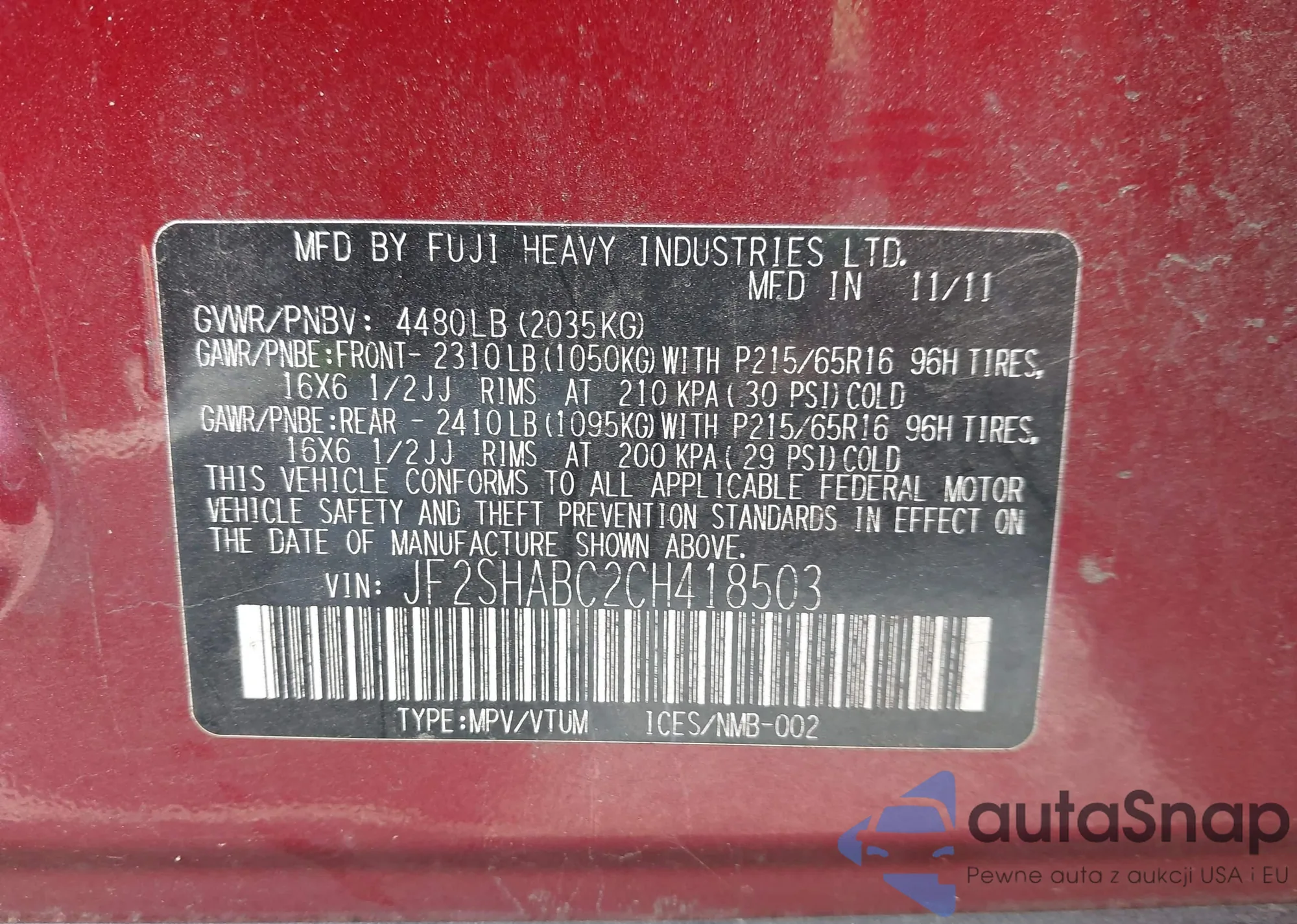• VIN JF2SHABC2CH418503
