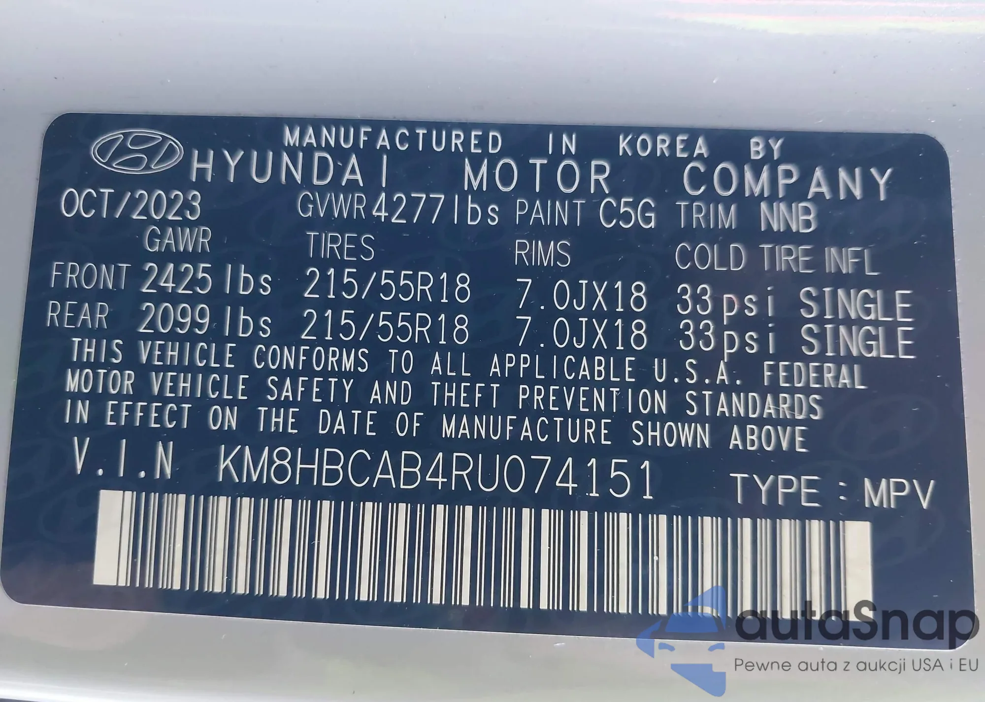• VIN KM8HBCAB4RU074151