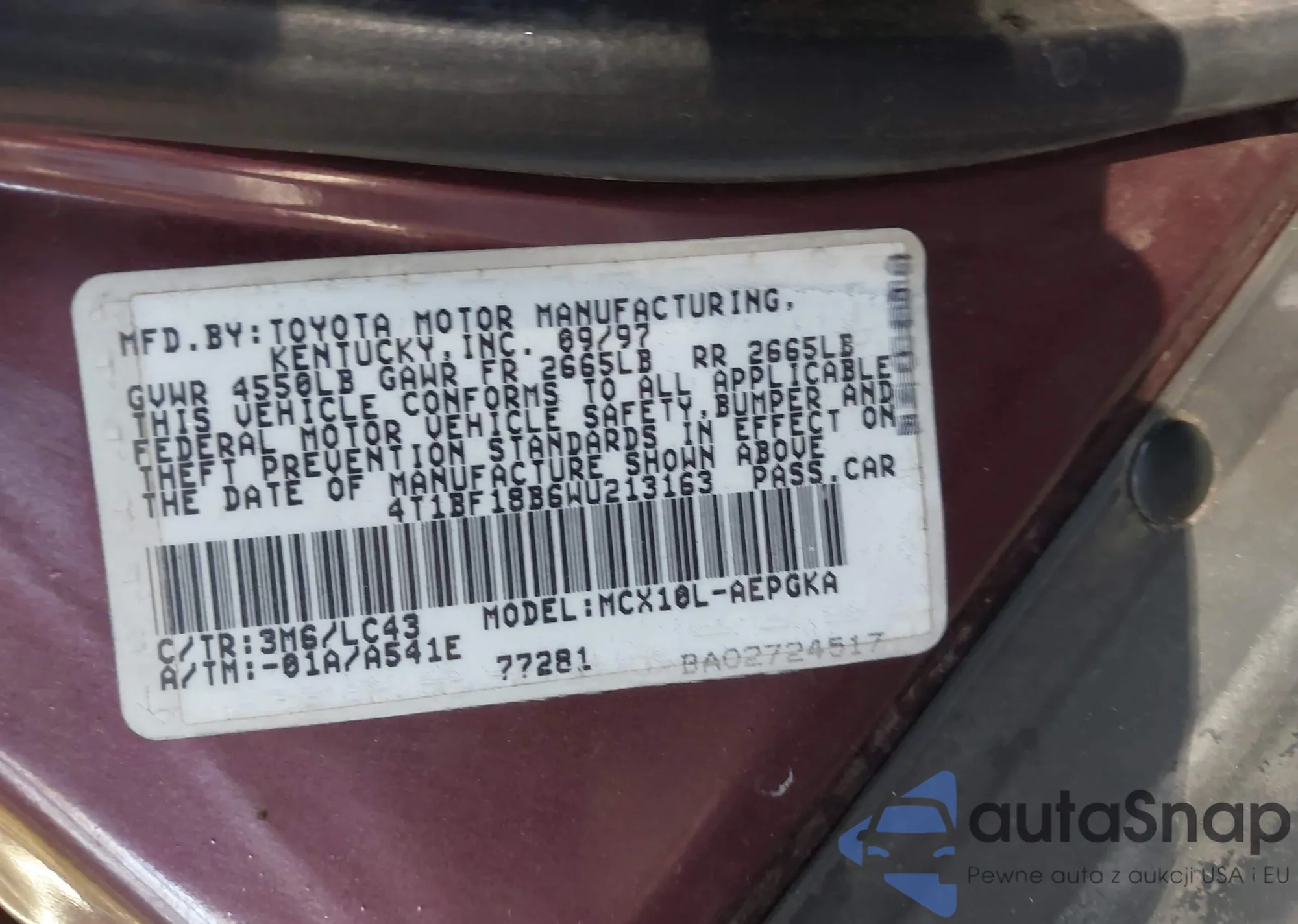 • Lot number 43695133