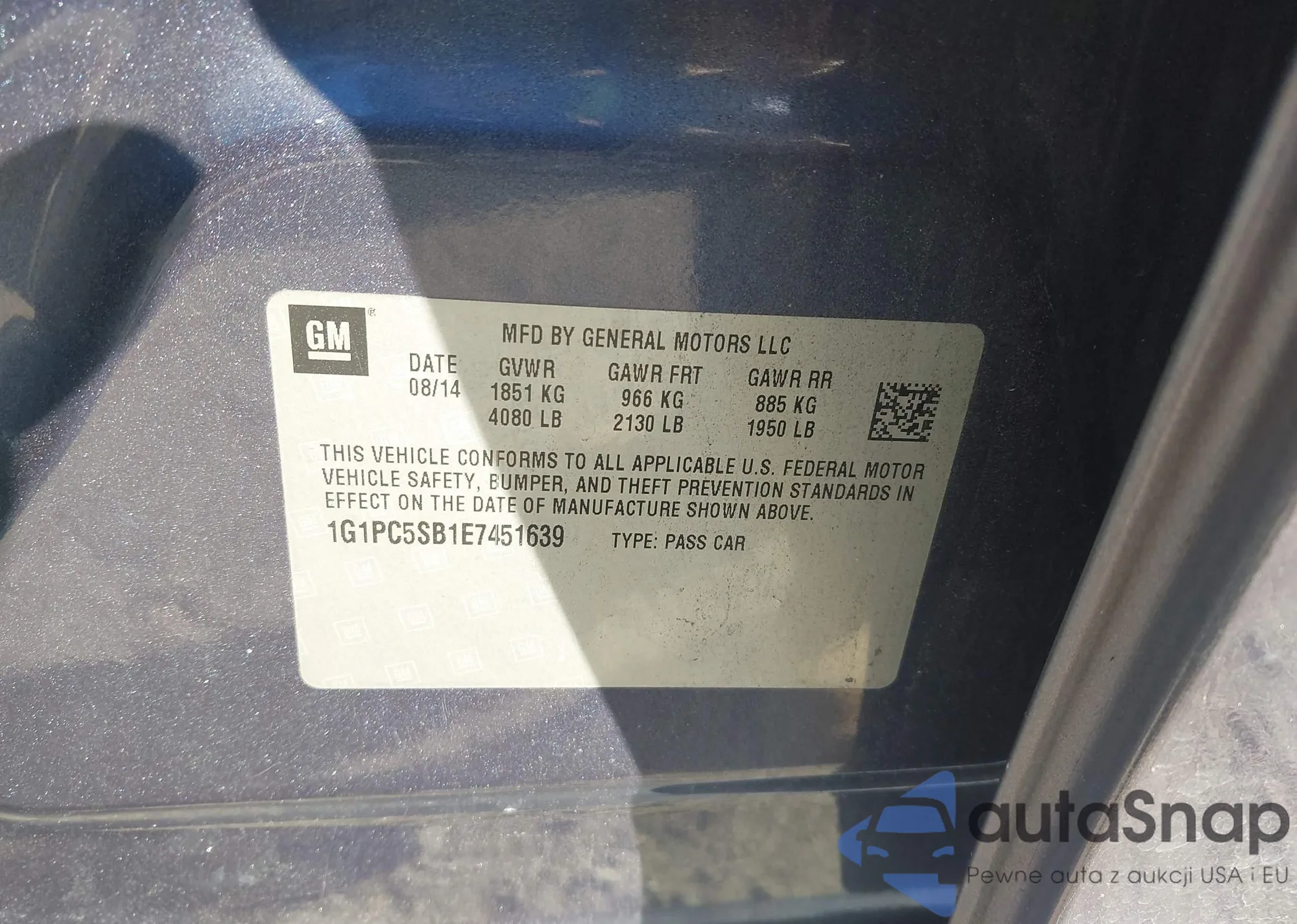LOT: 43628204 VIN: 1G1PC5SB1E7451639