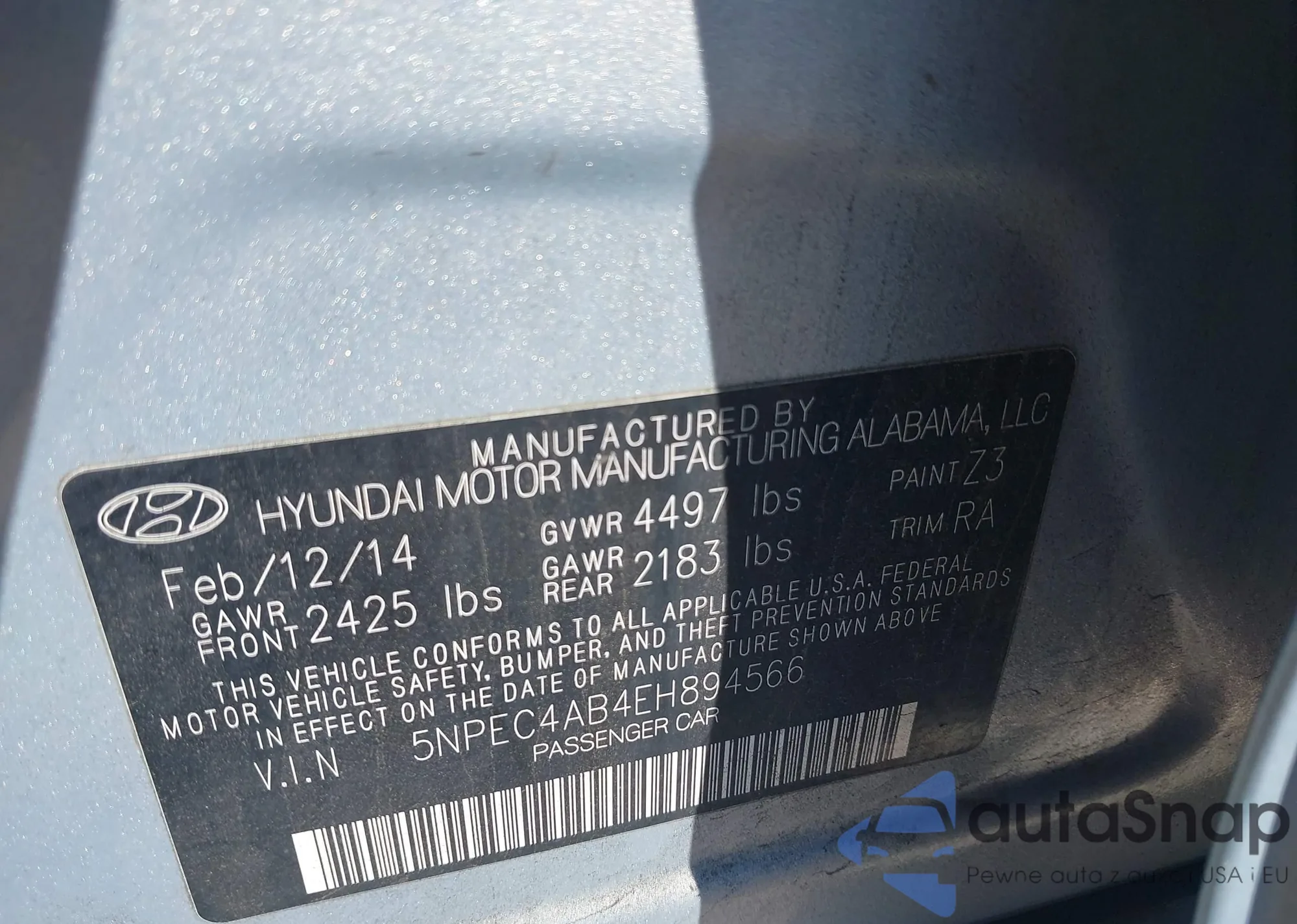 LOT: 43637703 VIN: 5NPEC4AB4EH894566