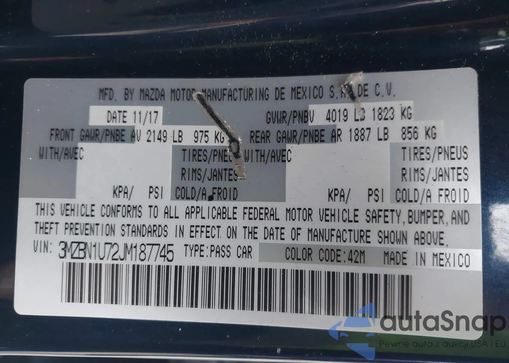 LOT: 43674356 VIN: 3MZBN1U72JM187745