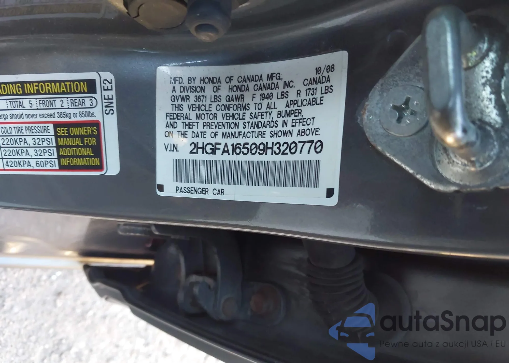 • VIN 2HGFA16509H320770