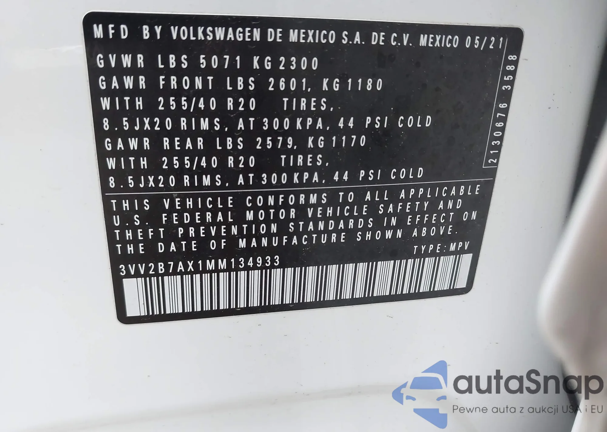LOT: 43400986 VIN: 3VWC57BU8KM065389