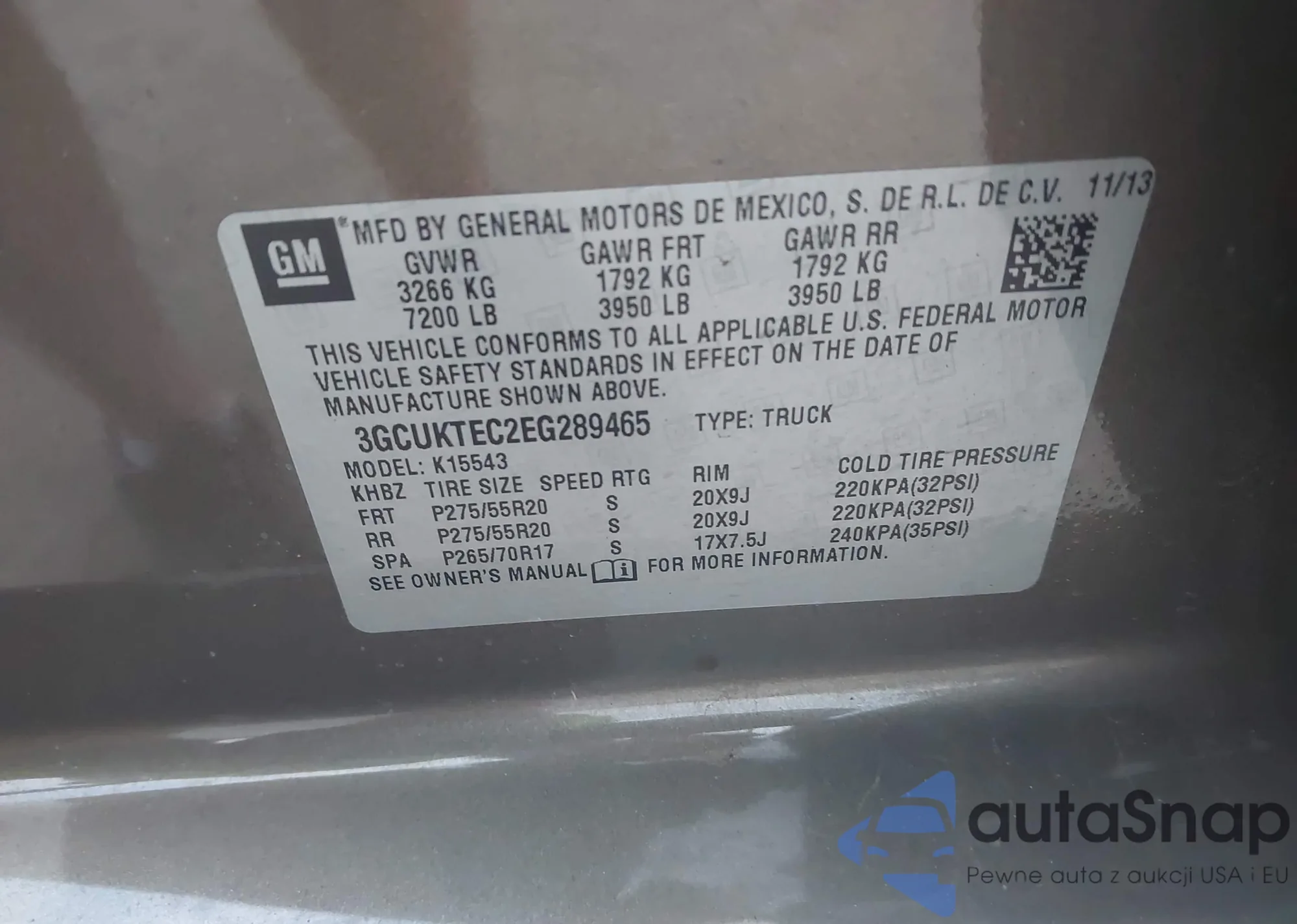 • VIN 3GCUKTEC2EG289465