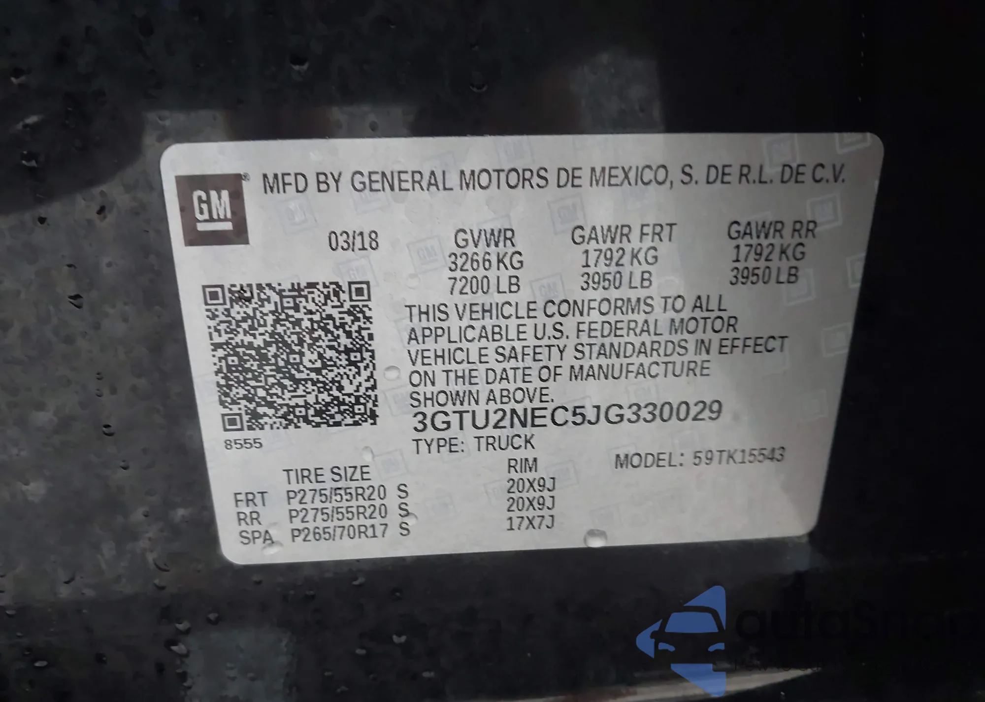• VIN 3GTU2NEC5JG330029