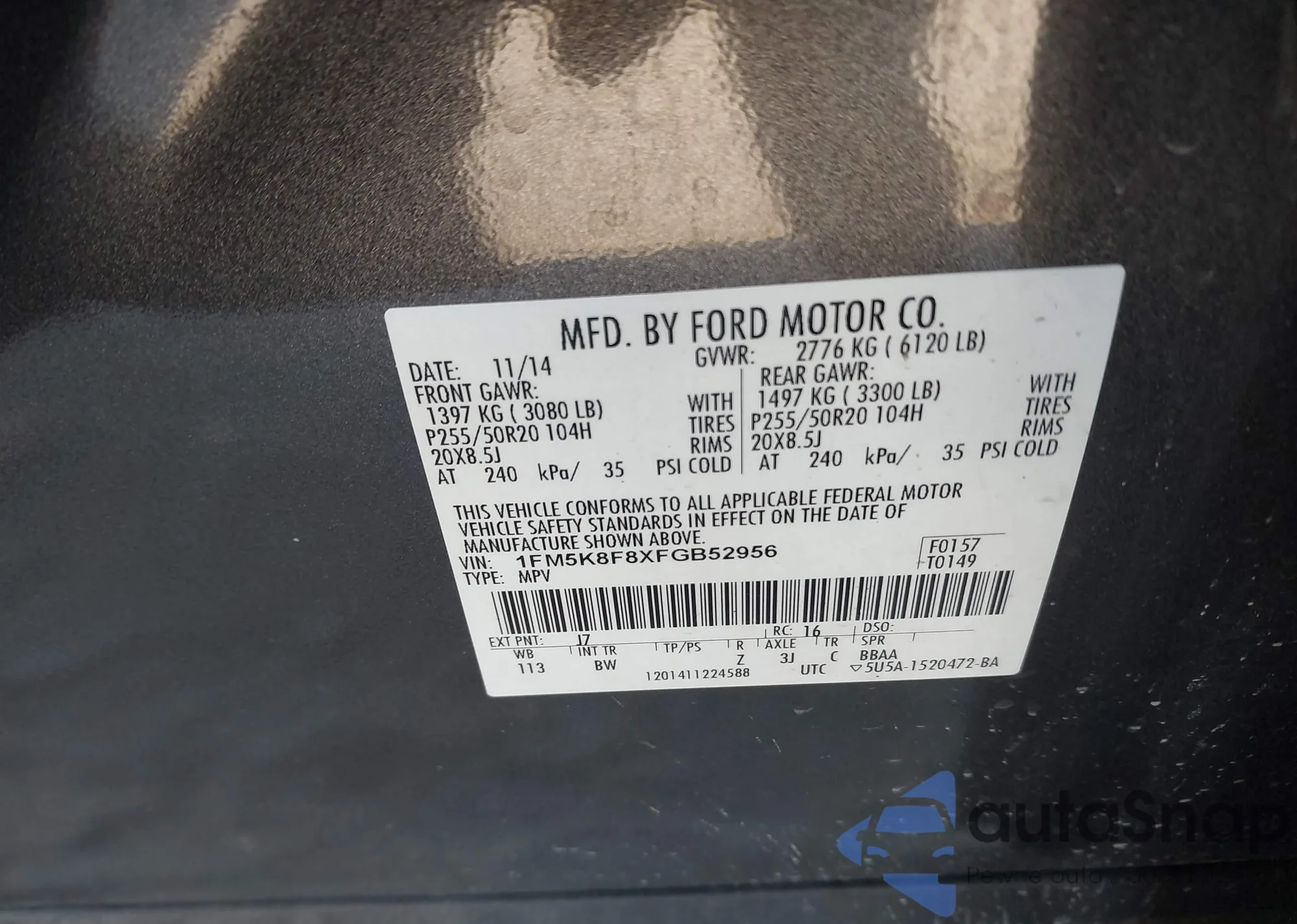LOT: 43475425 VIN: 1FM5K8F8XFGB52956