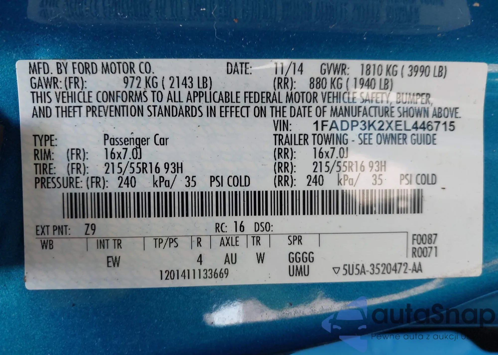 • VIN 2G1FB1ED6B9210867