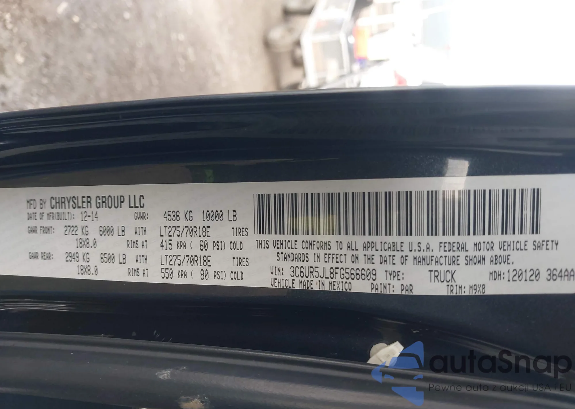 • VIN 3C6UR5JL8FG566609