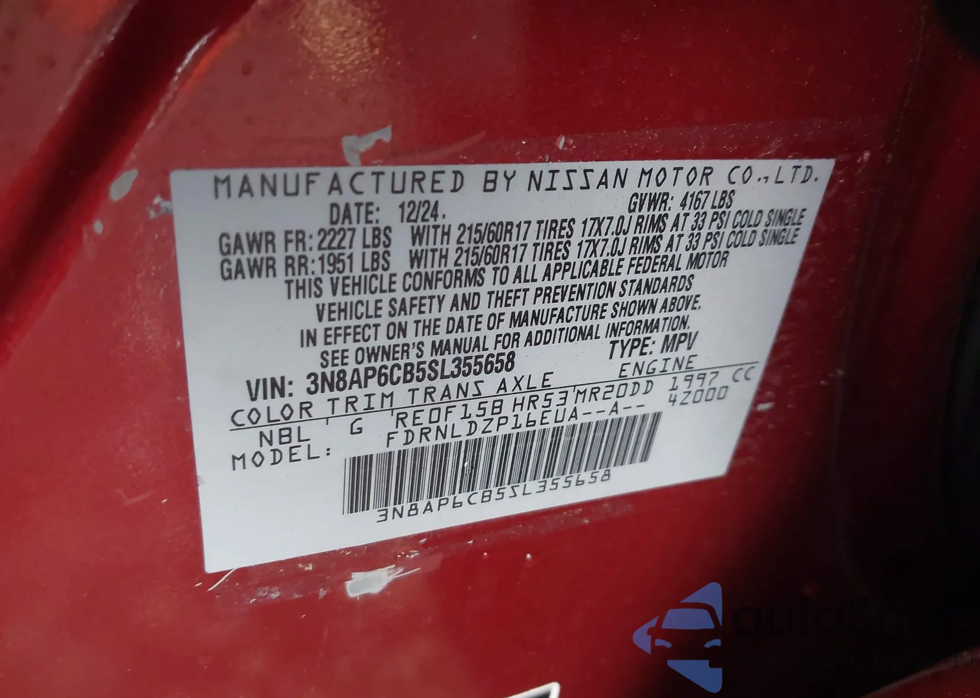 • VIN 3N8AP6CB5SL355658