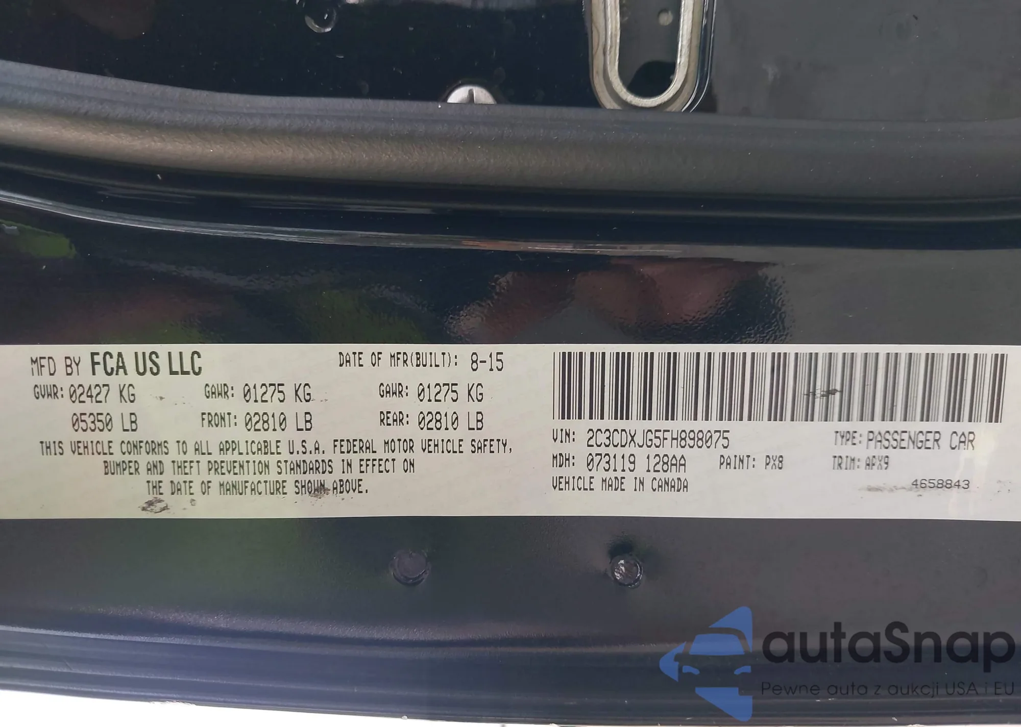 • VIN 2C3CDXJG5FH898075