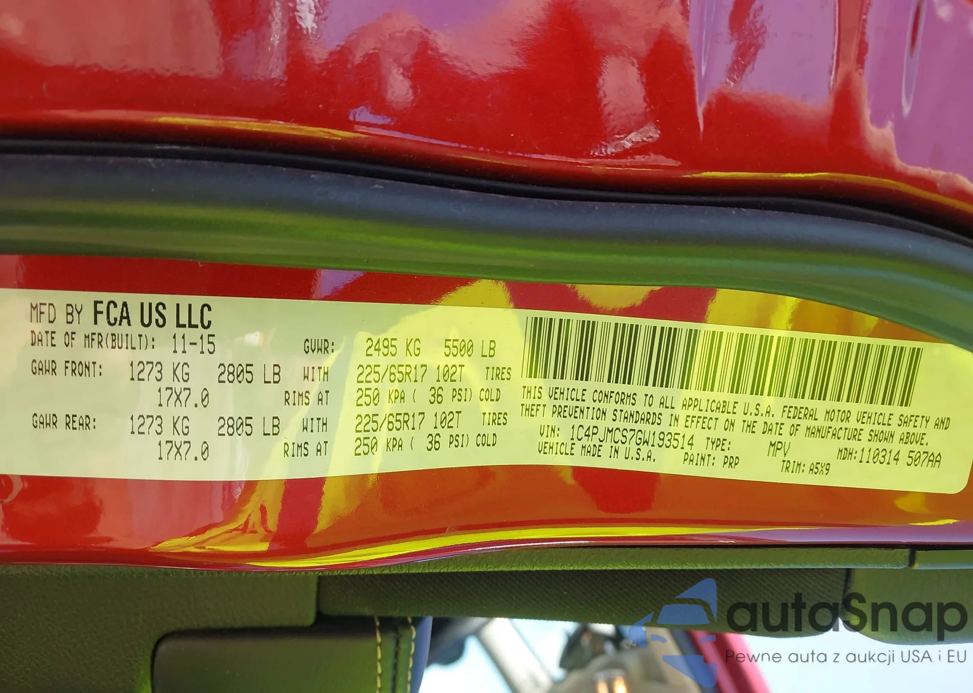 LOT: 43161324 VIN: 1C4PJMCS7GW193514