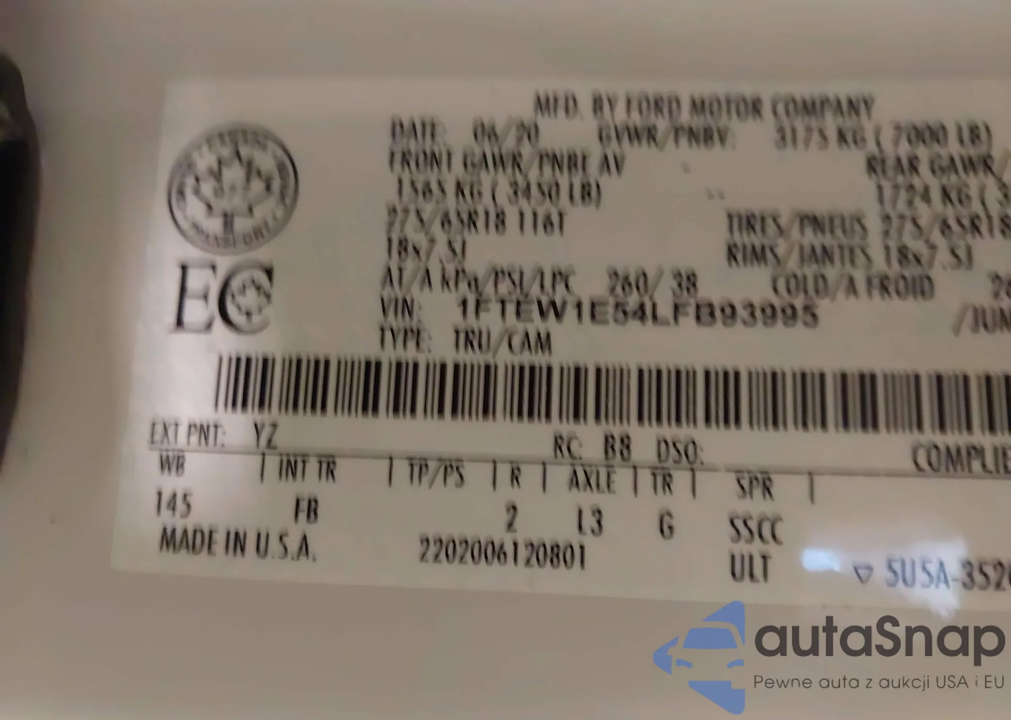 LOT: 43241828 VIN: 1FTEW1E54LFB93995