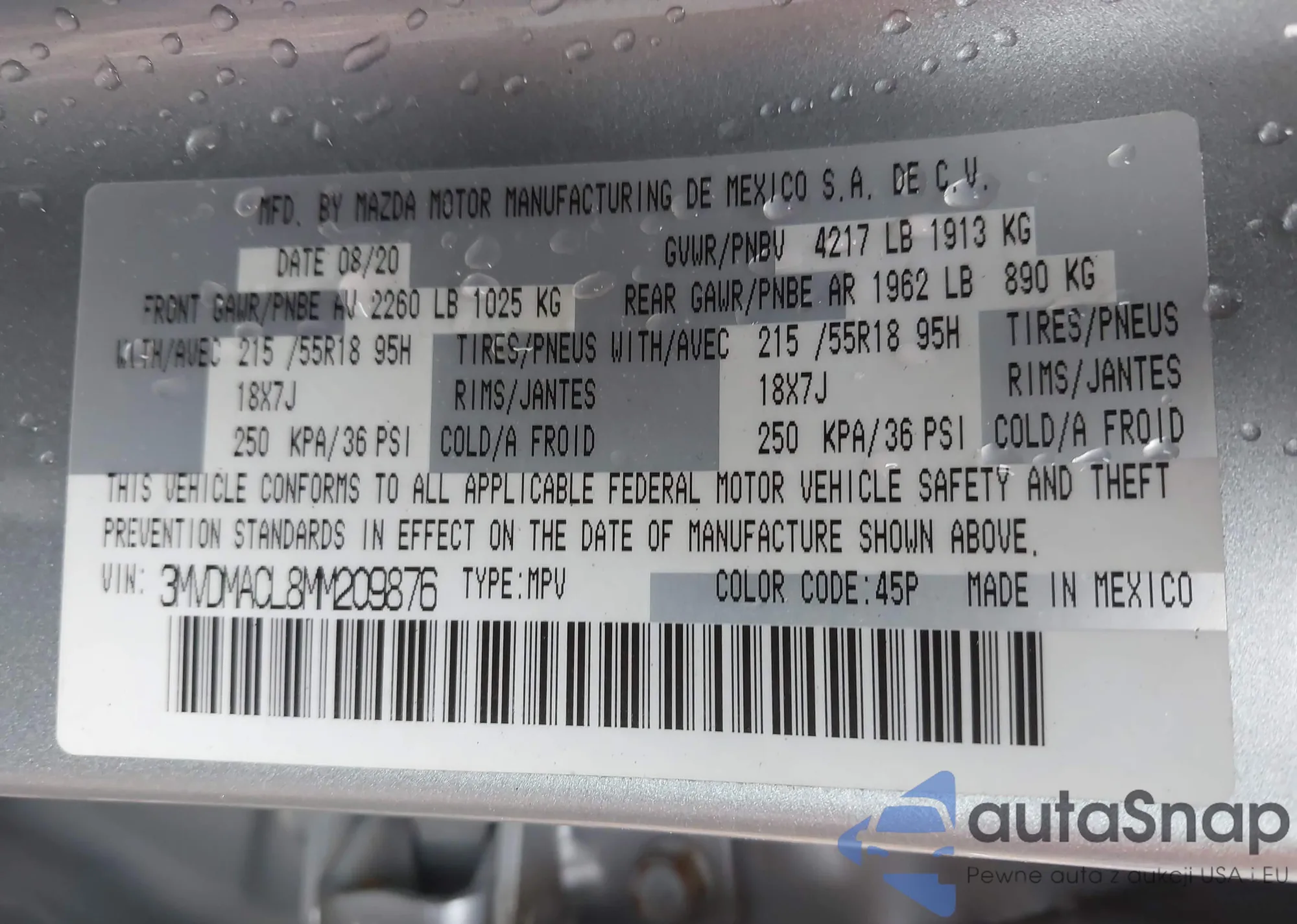 • VIN 3MVDMACL8MM209876