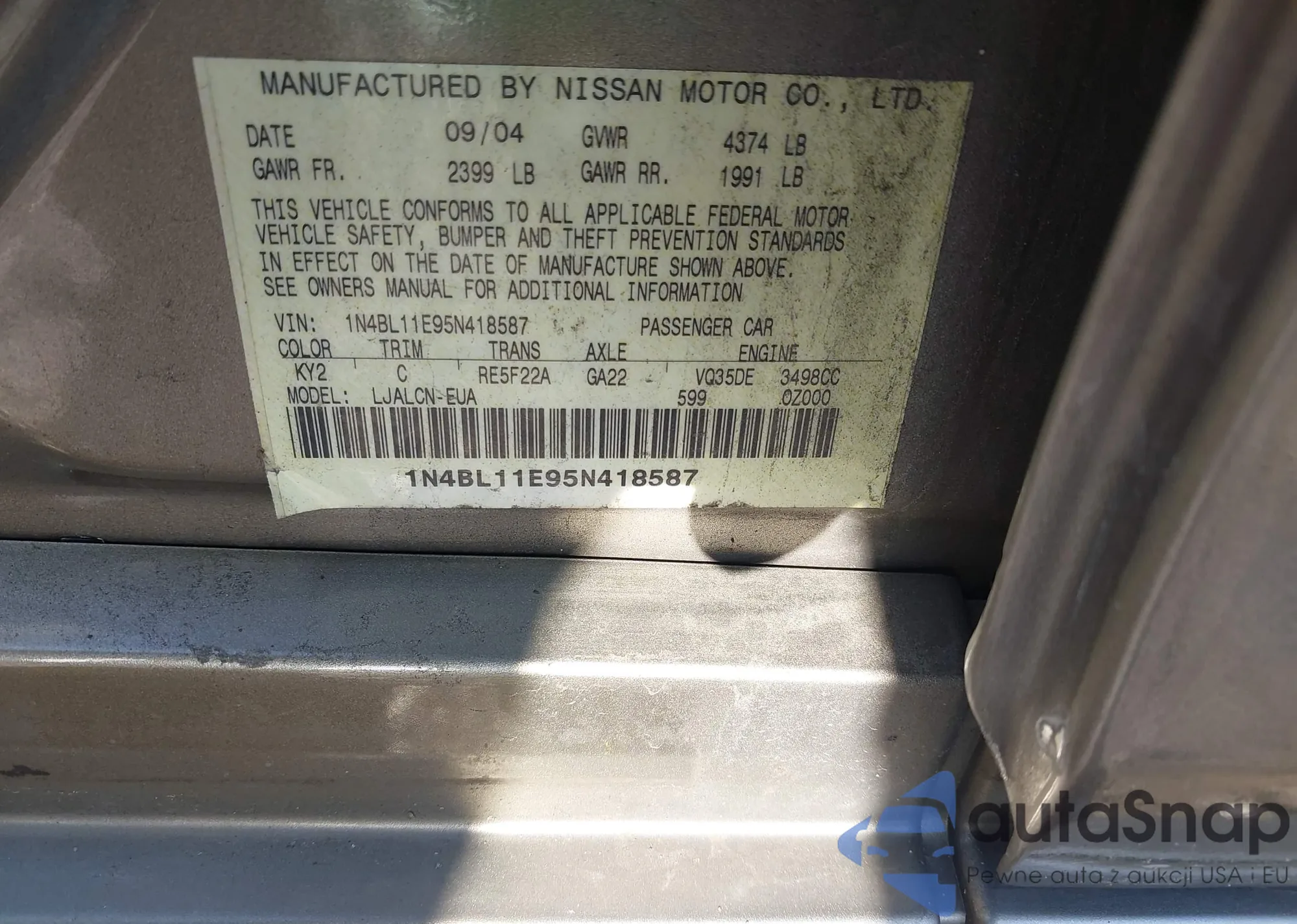 LOT: 43683627 VIN: 1N4BL11E95N418587