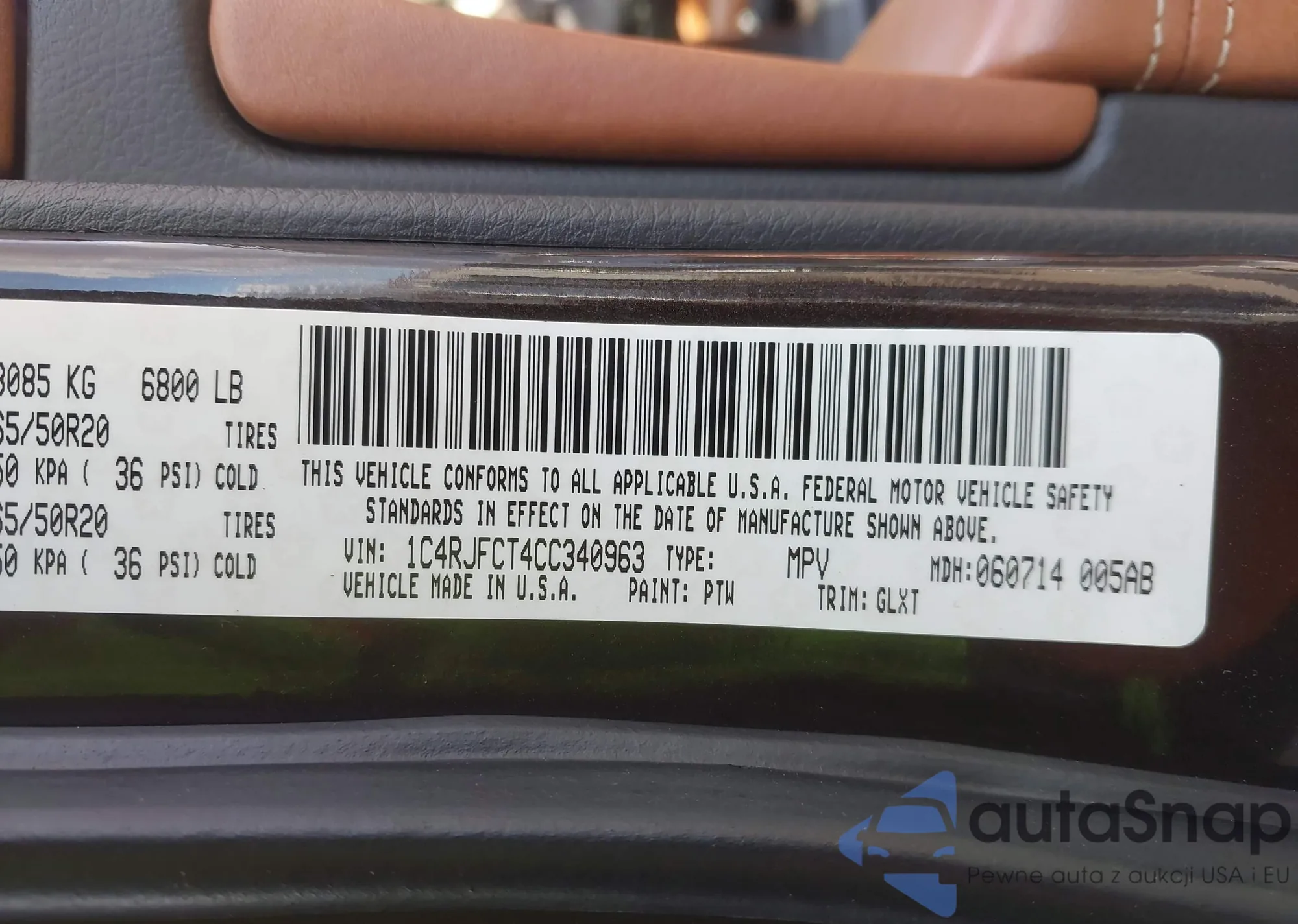 • VIN 1C4RJFCT4CC340963