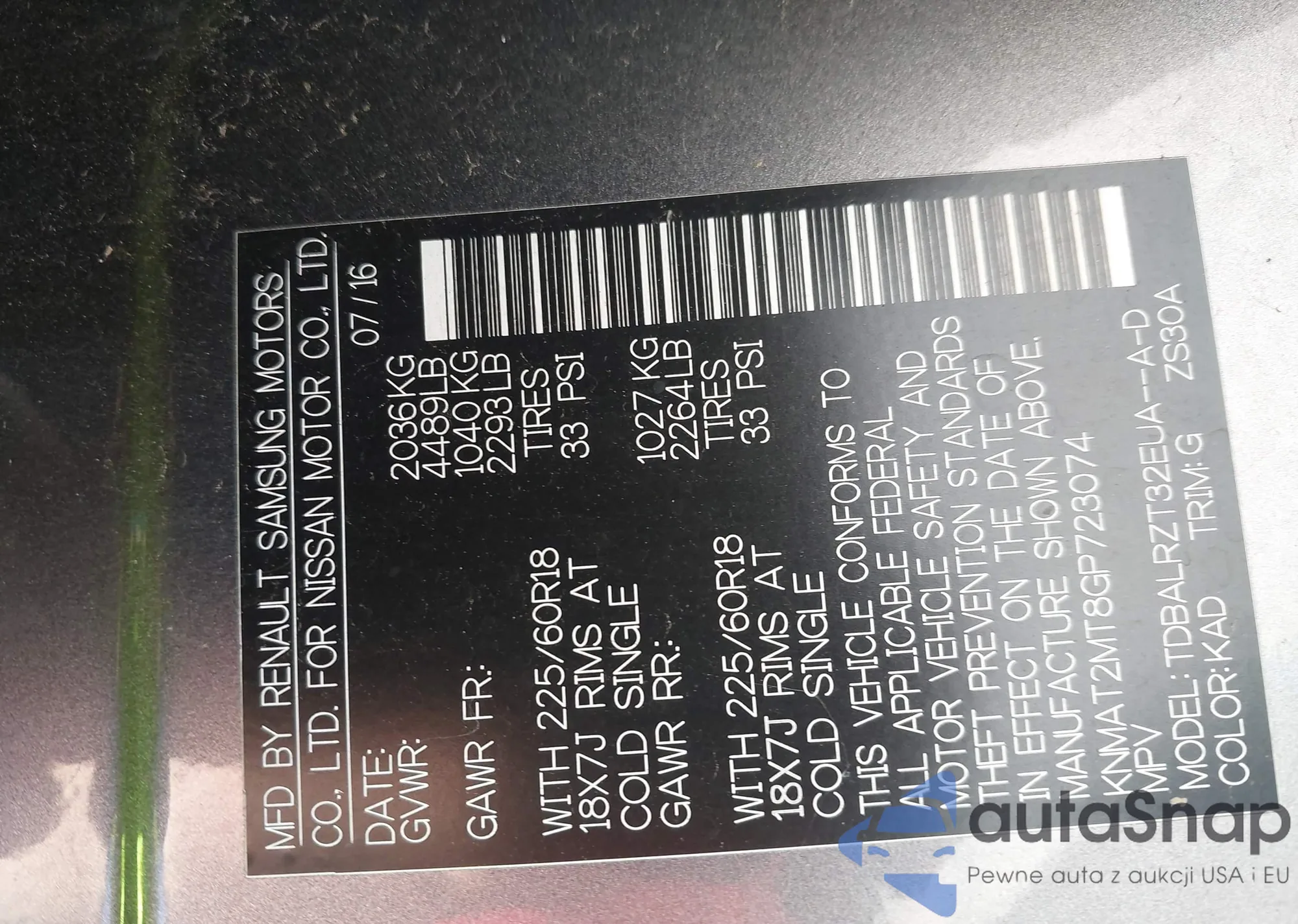 • VIN KNMAT2MT8GP723074