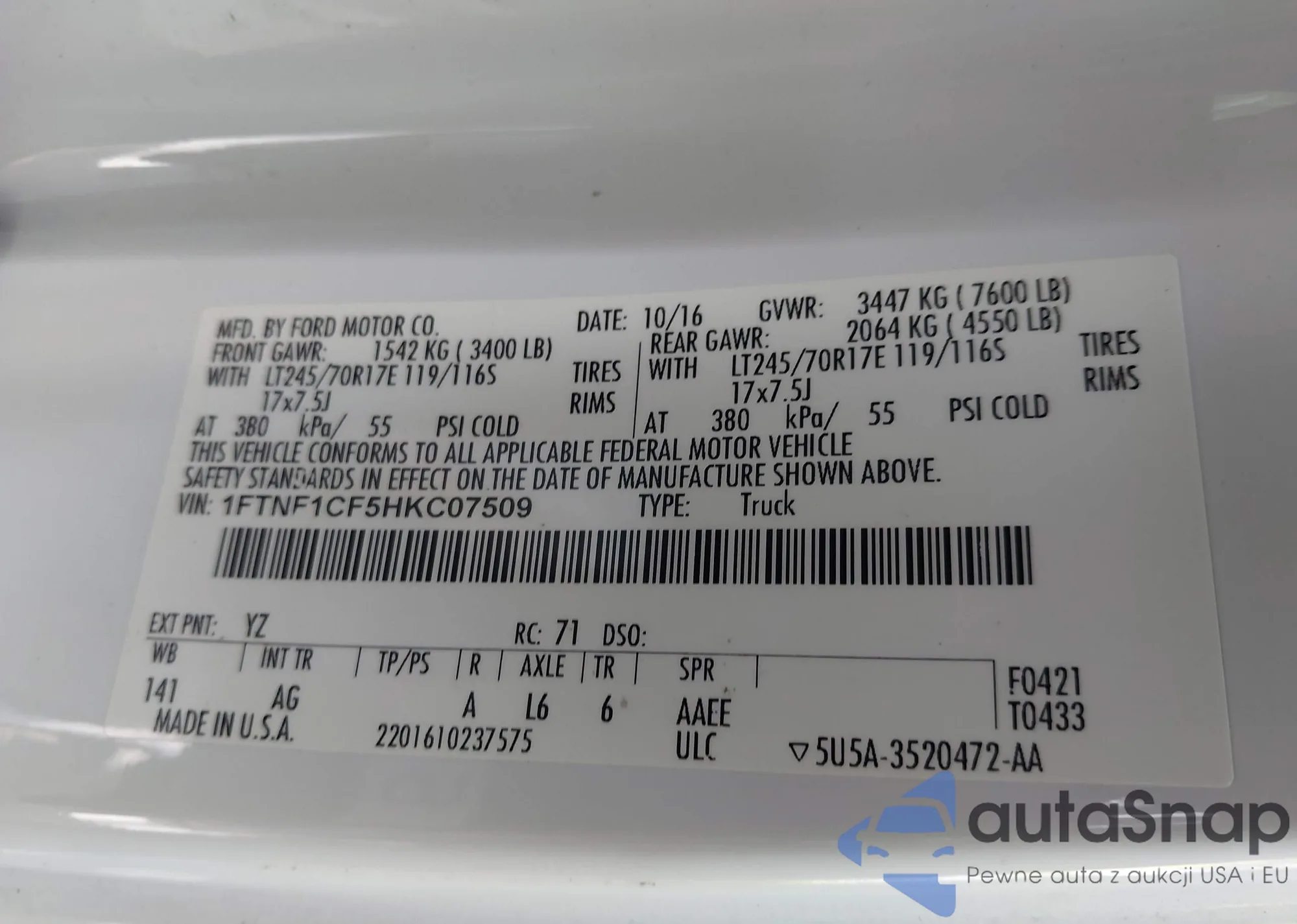 LOT: 43538777 VIN: KNALN4D75F5171171