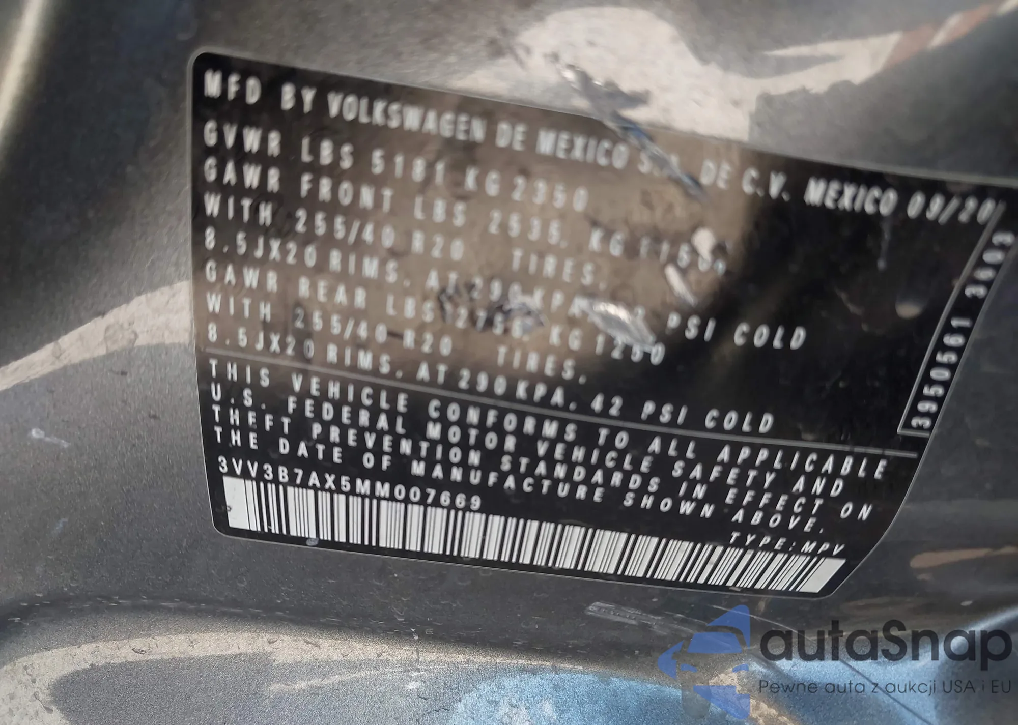 • VIN 3VV3B7AX5MM007669