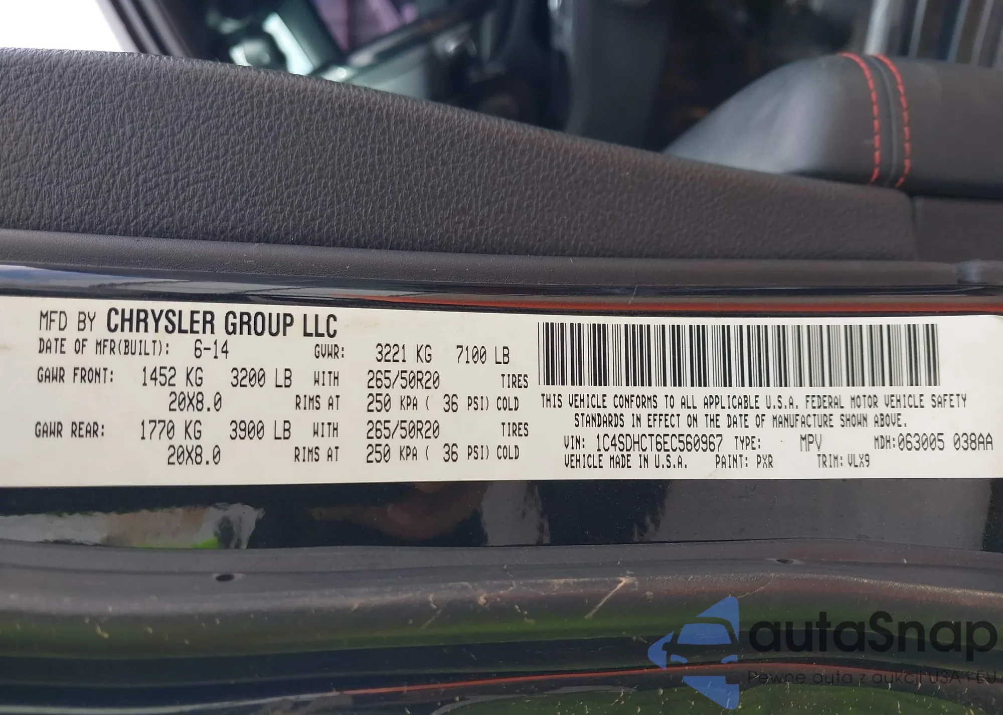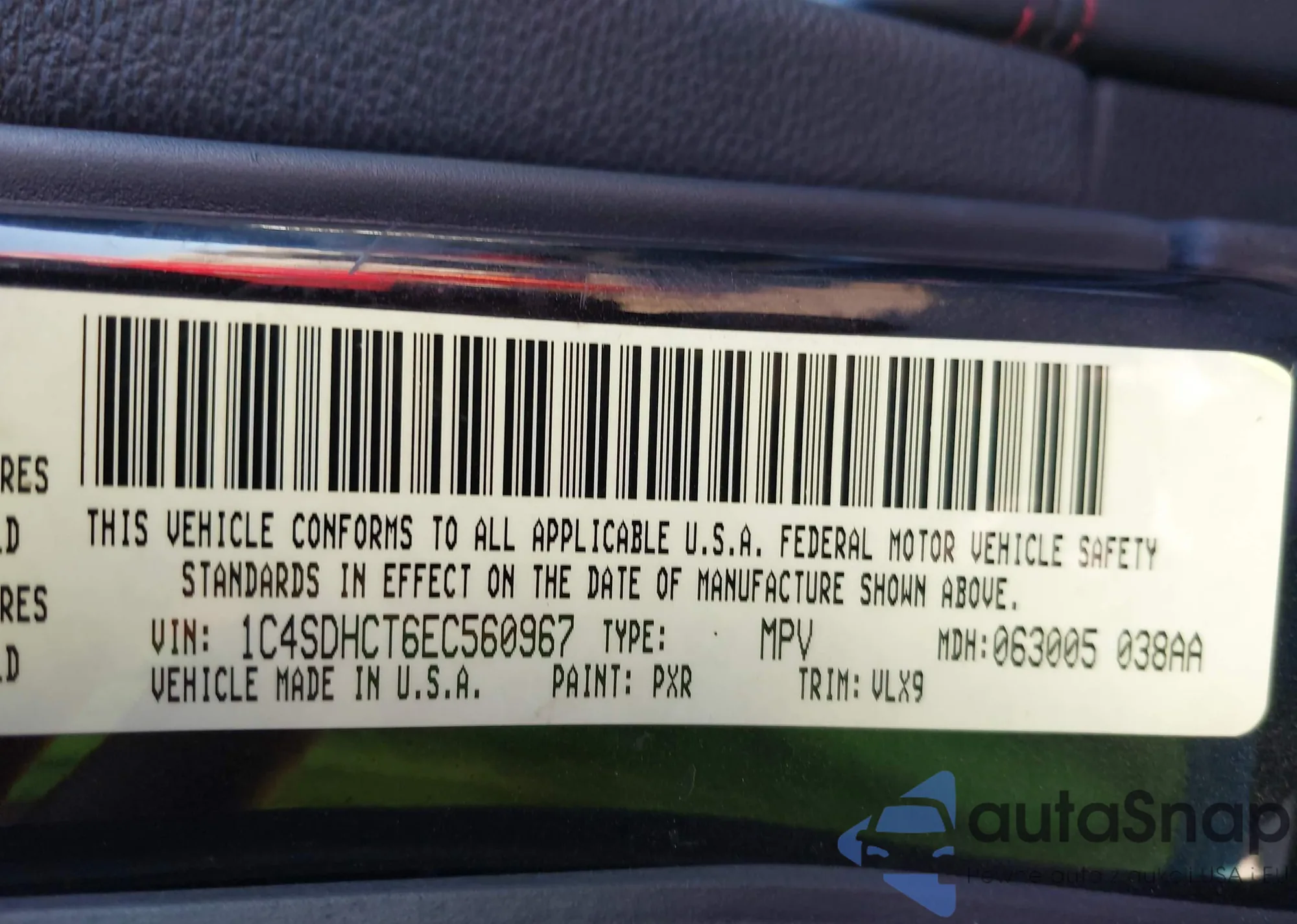 • VIN 1C4SDHCT6EC560967