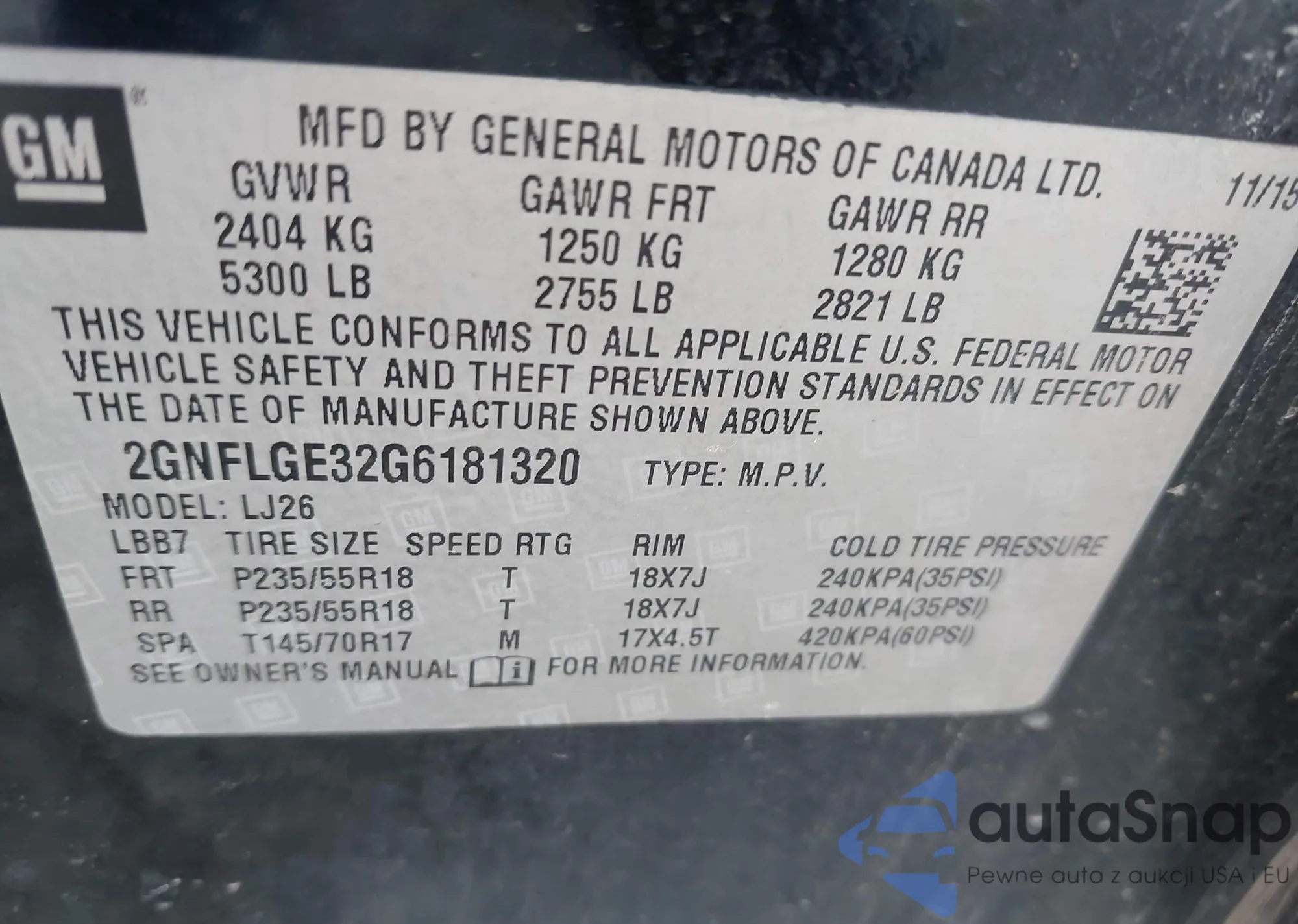 • VIN 2GNFLGE32G6181320