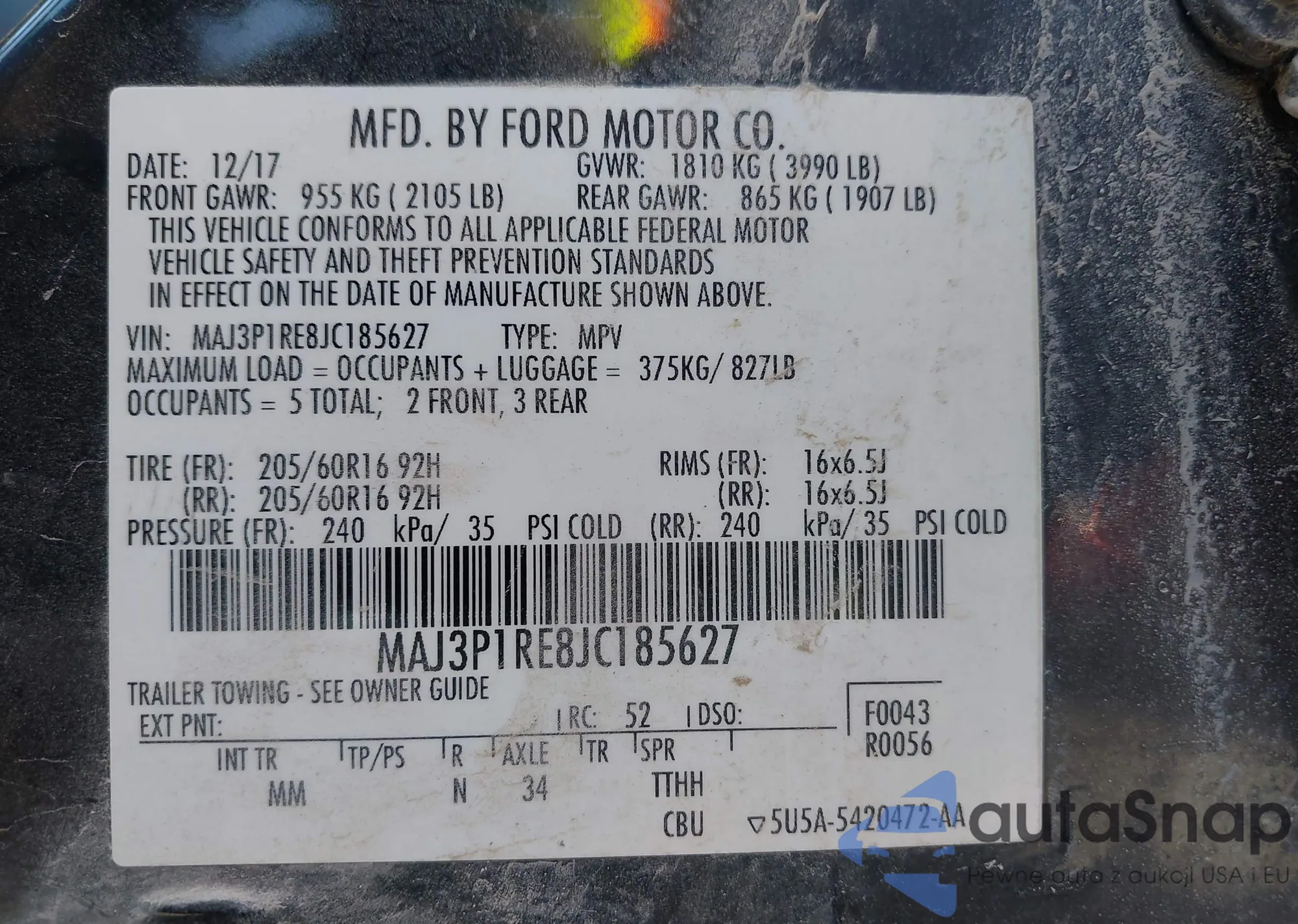 • VIN KNDCC3LC8H5057038