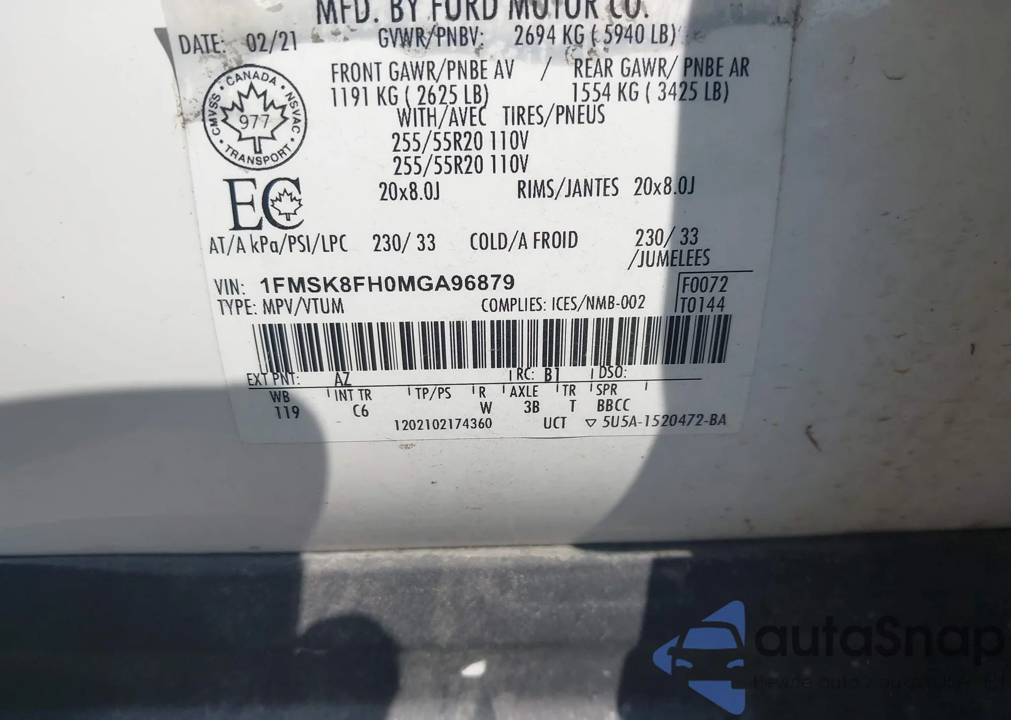 LOT: 43509544 VIN: 3KPF54AD8PE584024