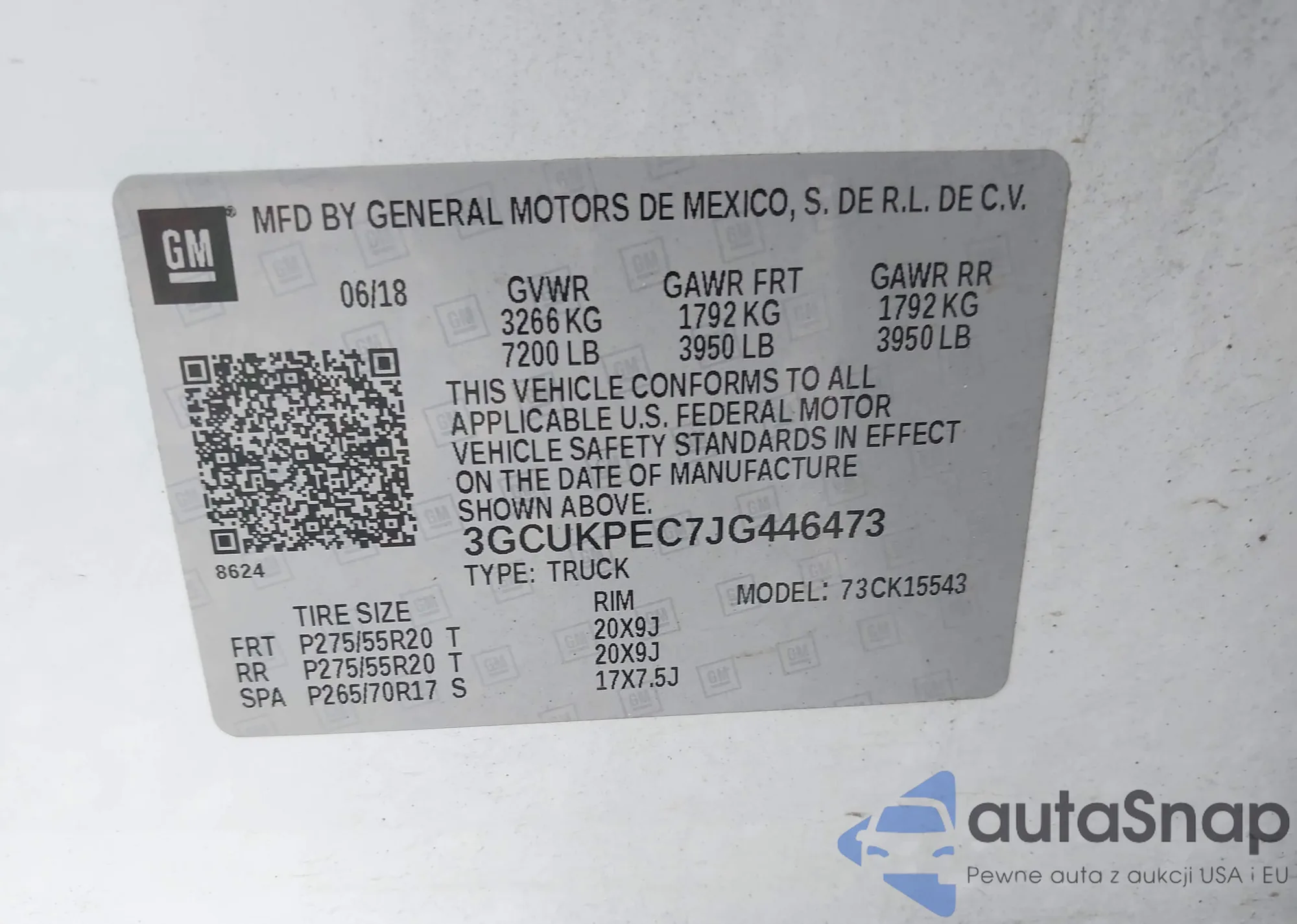 • VIN 3GCUKPEC7JG446473