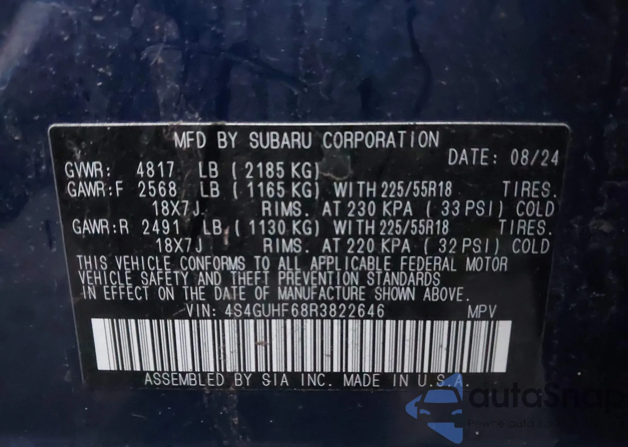 • VIN 4S4GUHF68R3822646