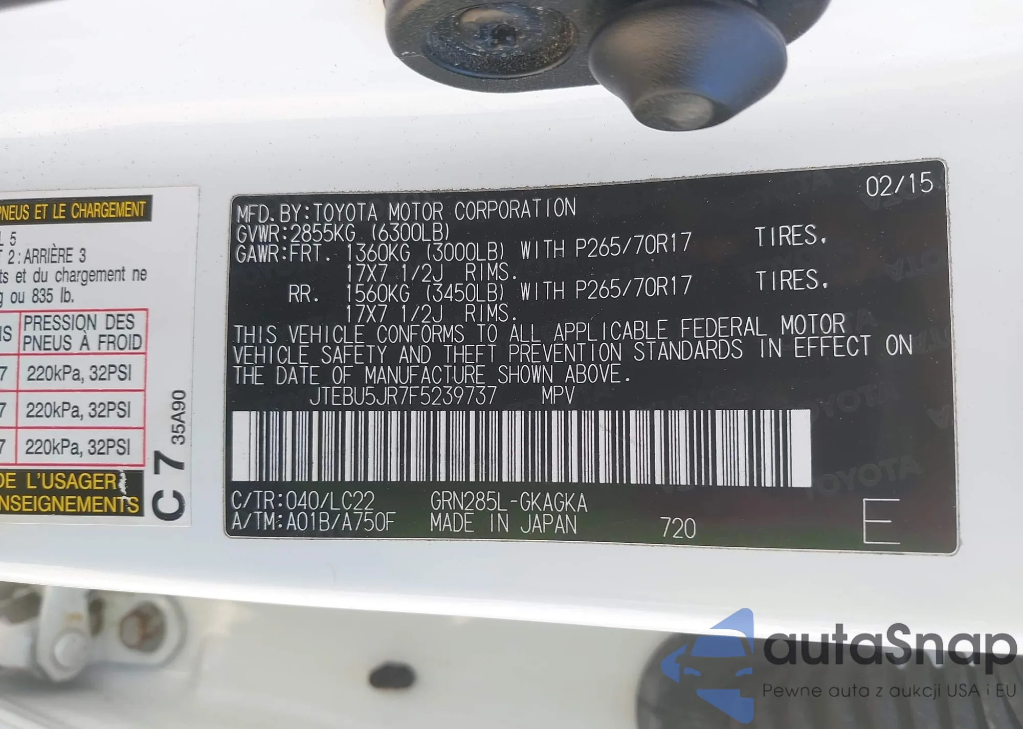 LOT: 43725834 VIN: JTEBU5JR7F5239737