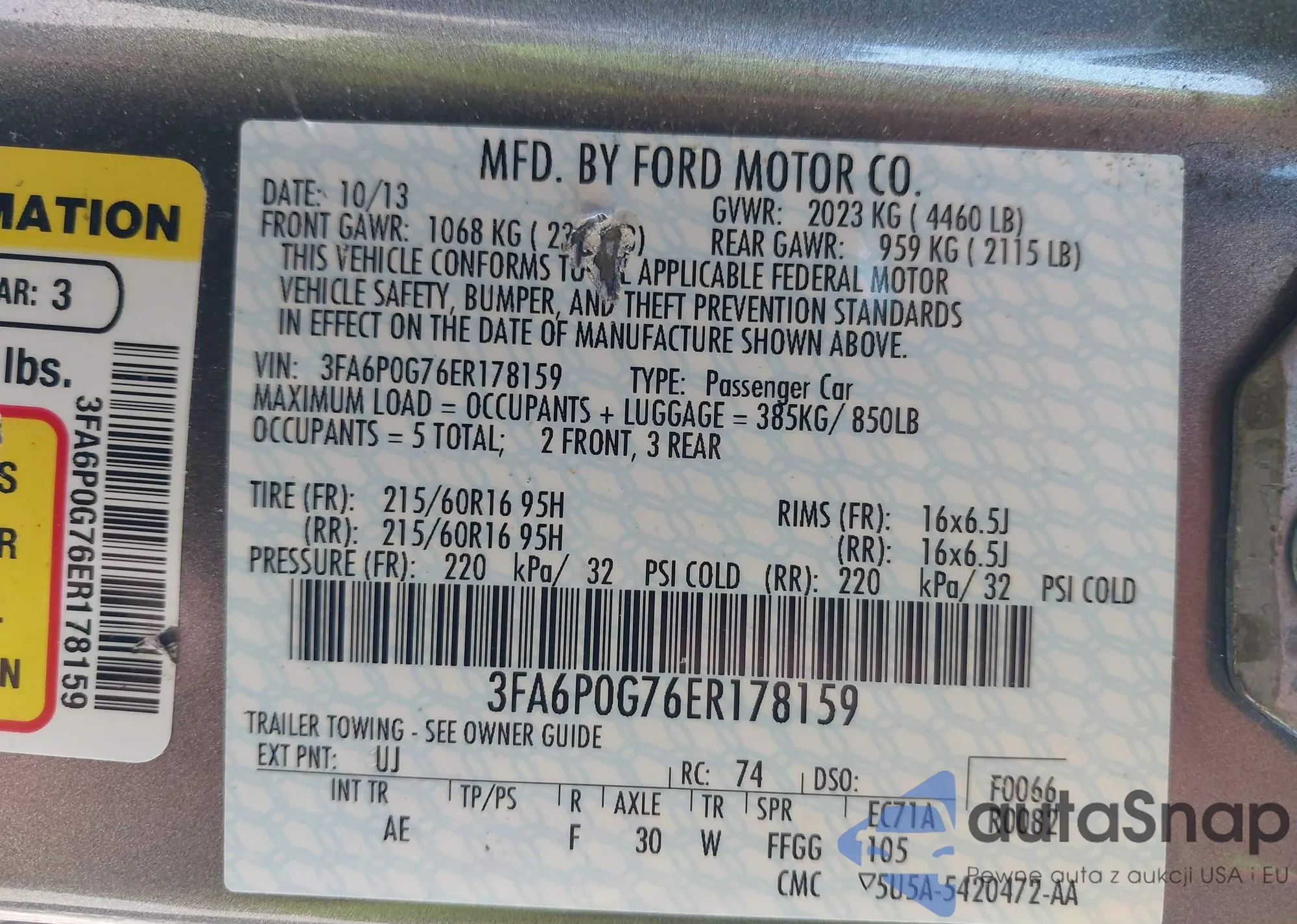 LOT: 42973025 VIN: 3FA6P0G76ER178159