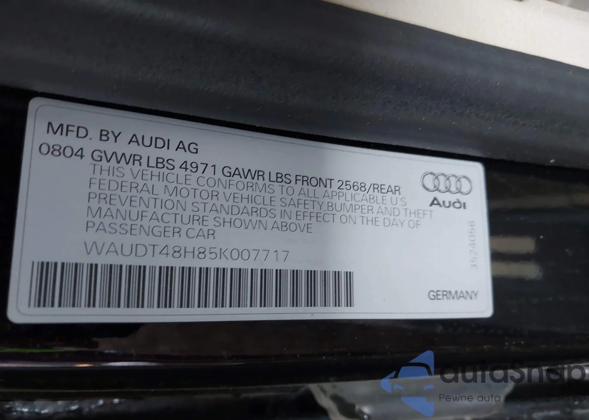 LOT: 43341023 VIN: WAUDT48H85K007717