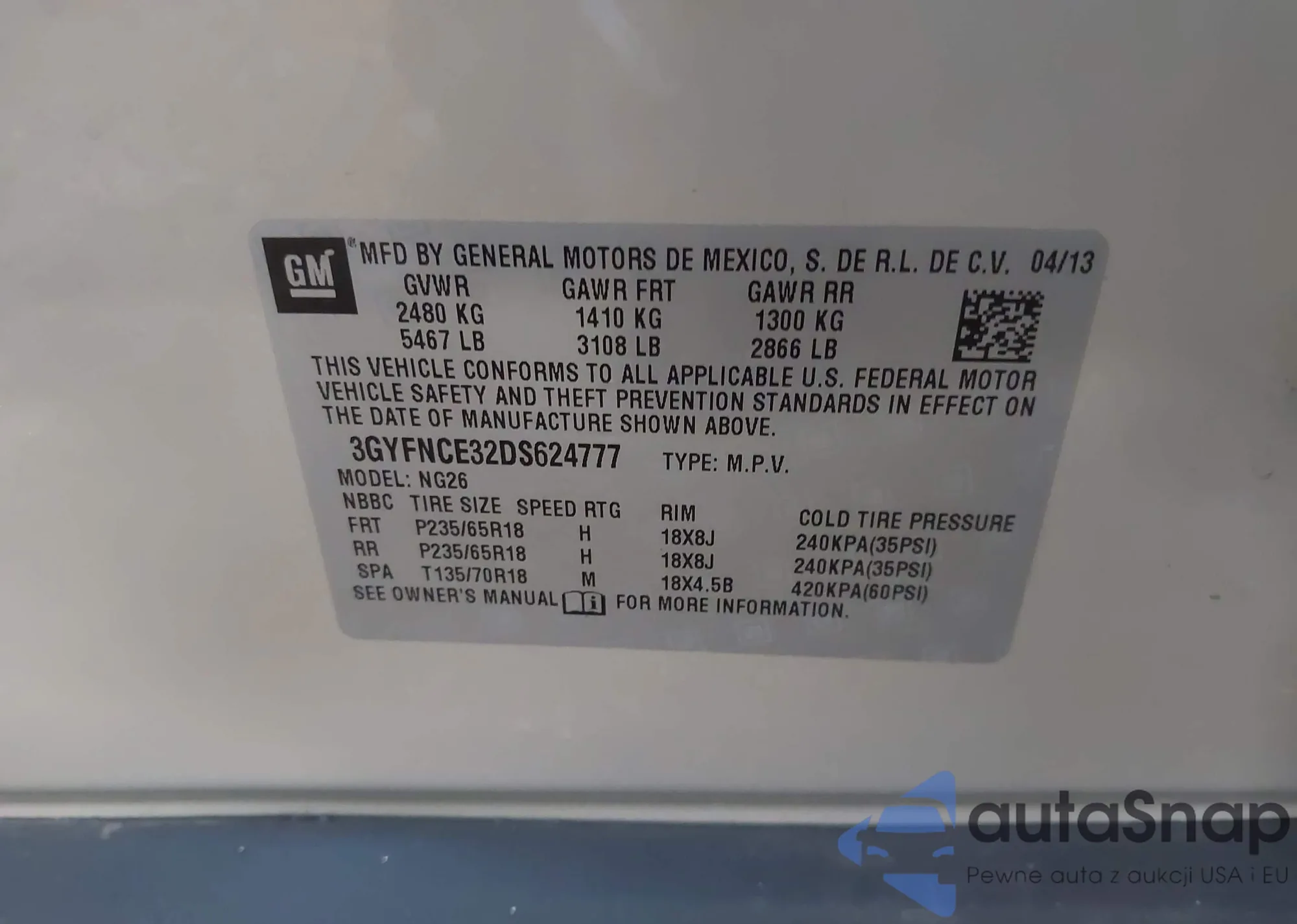 • VIN 3GYFNCE32DS624777