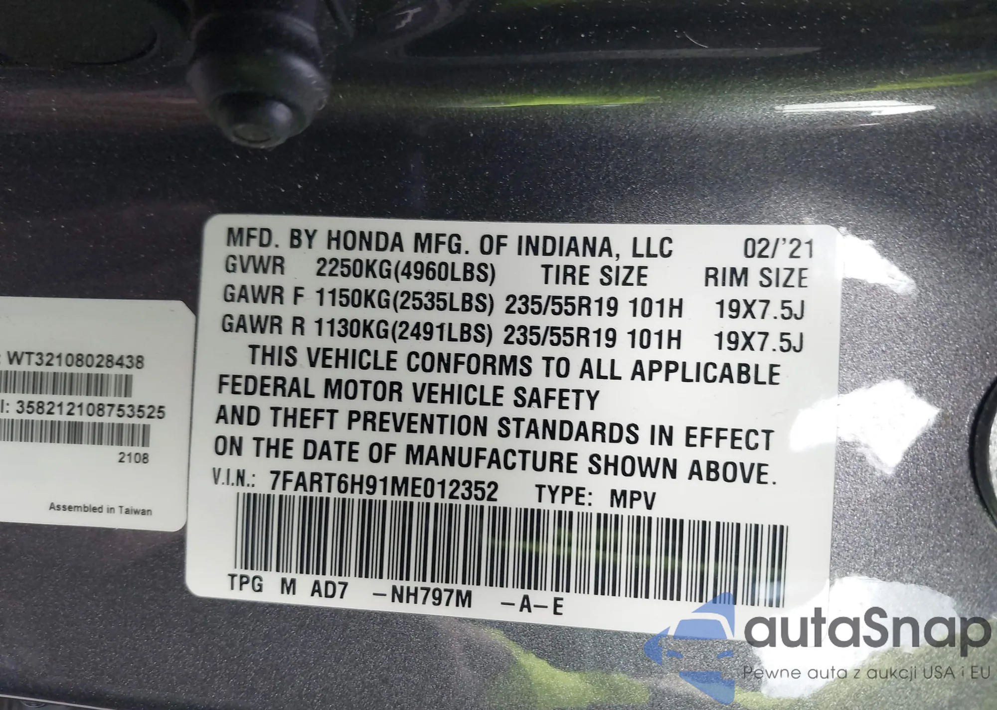 LOT: 43422356 VIN: 5FNRL5H97DB035138