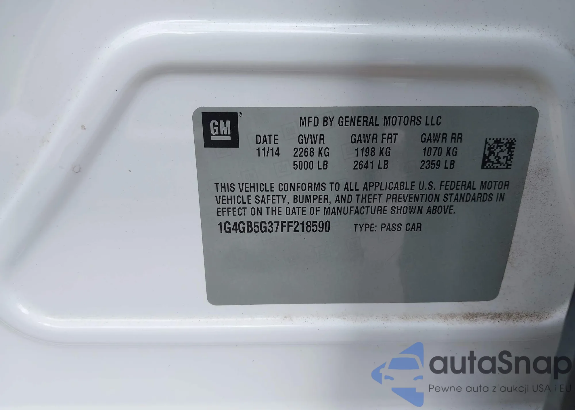 • VIN 1G4GB5G37FF218590