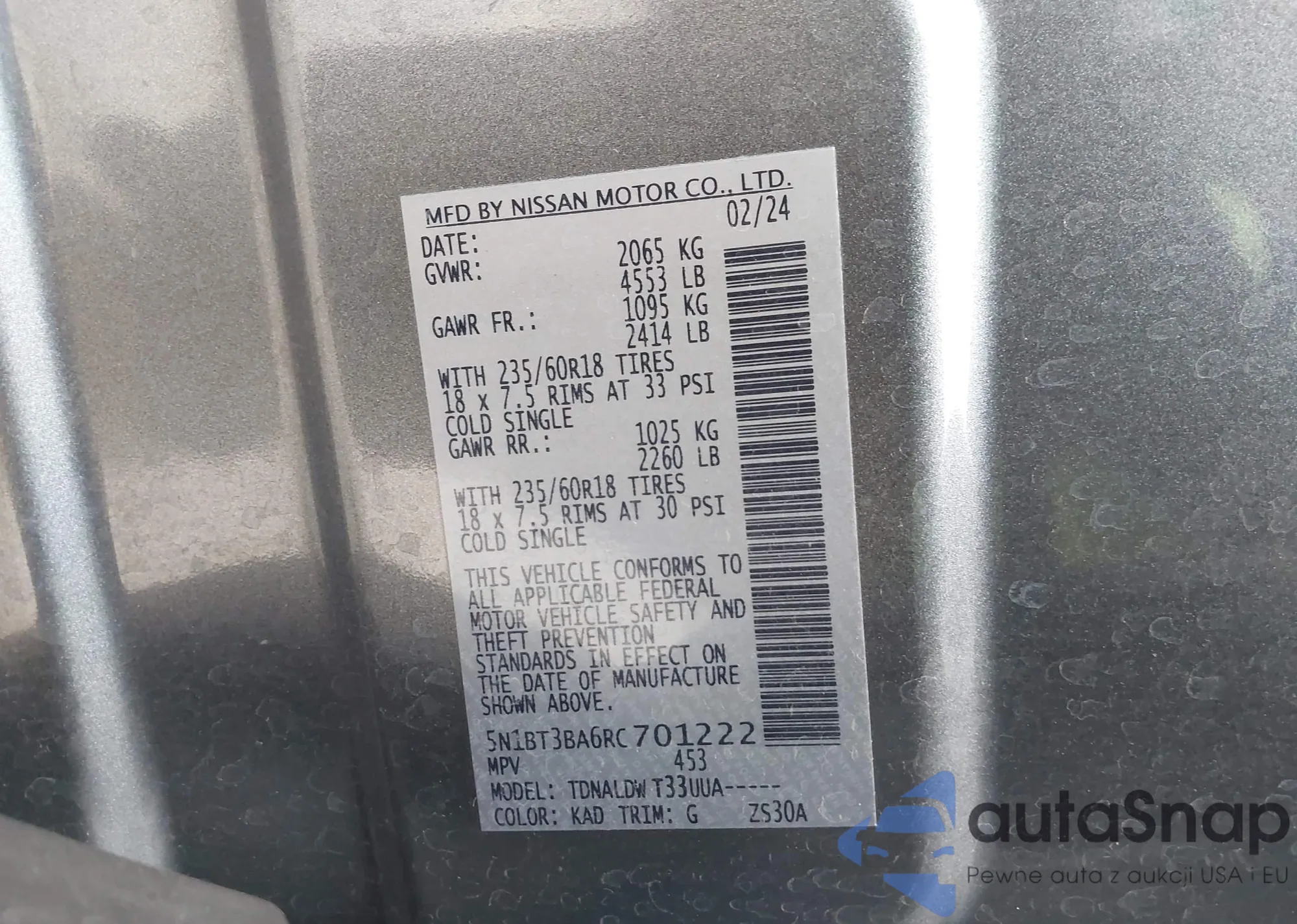 LOT: 40843312 VIN: JN8AT2MV6JW325963
