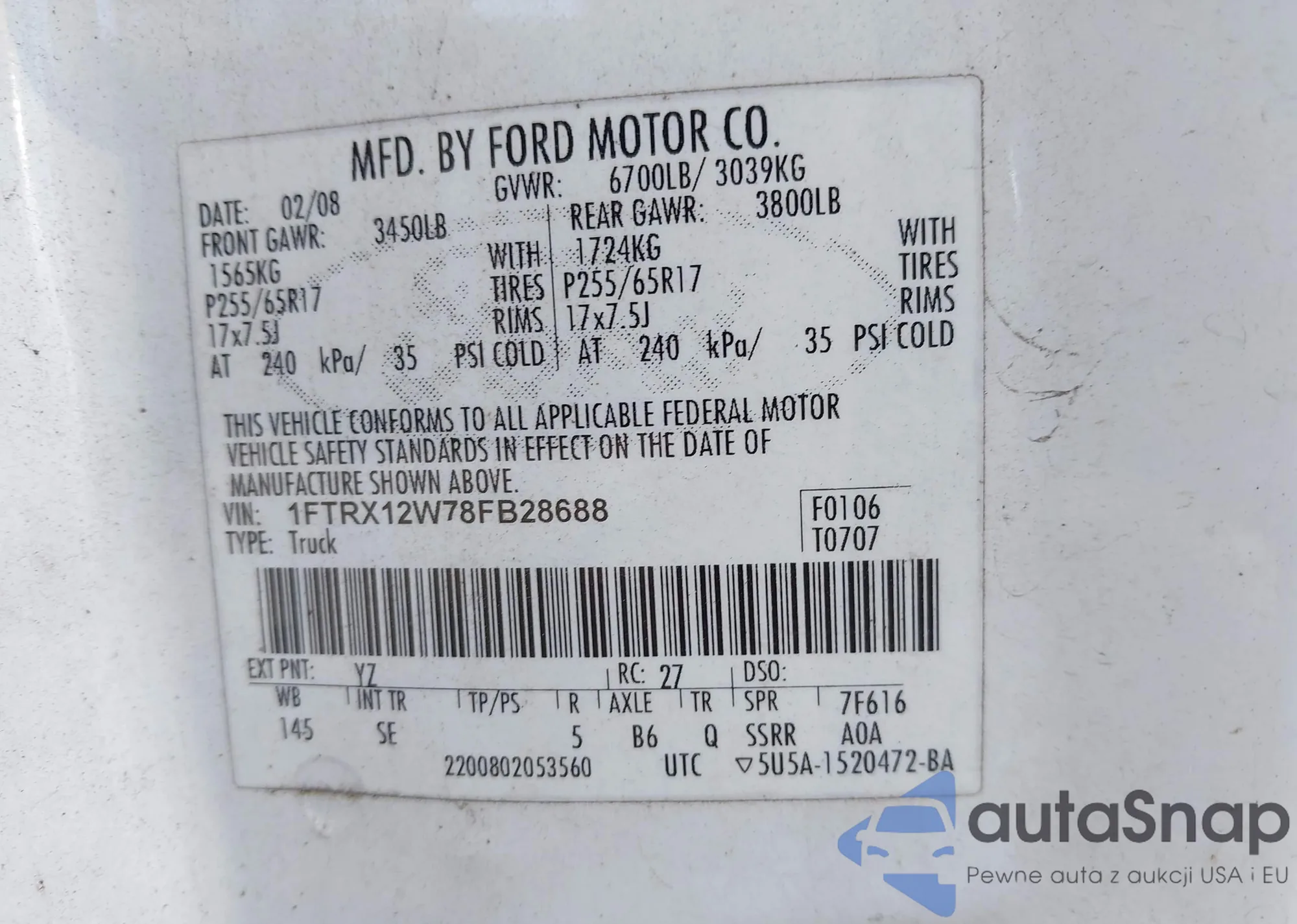 LOT: 43722188 VIN: 1FMCU93126KC14958