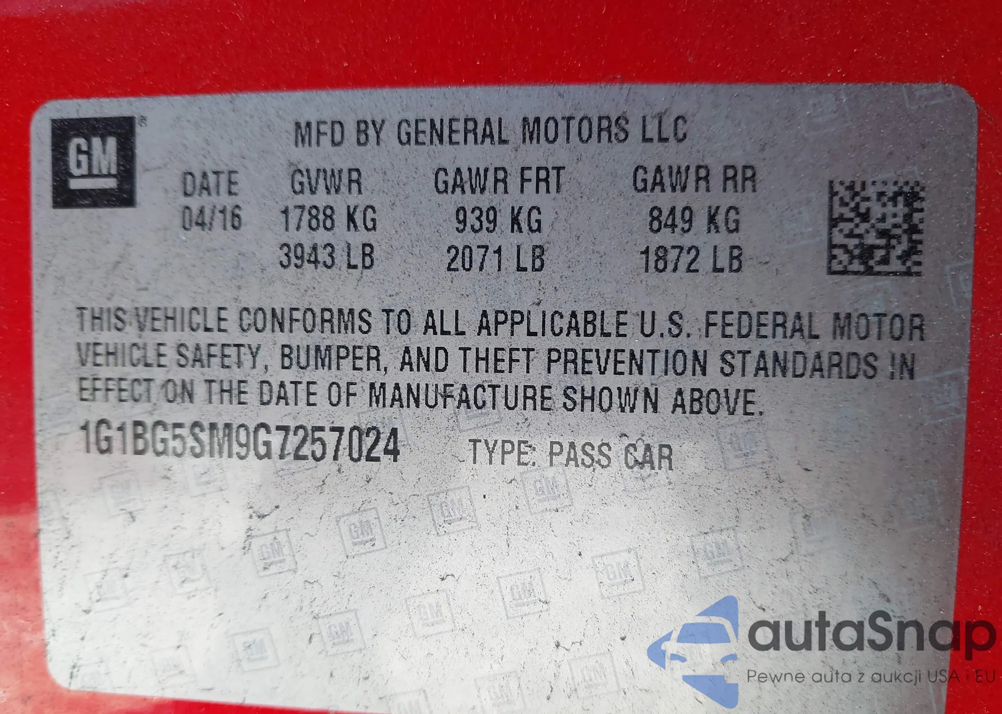 LOT: 43468957 VIN: 1G1AD1F56A7160256