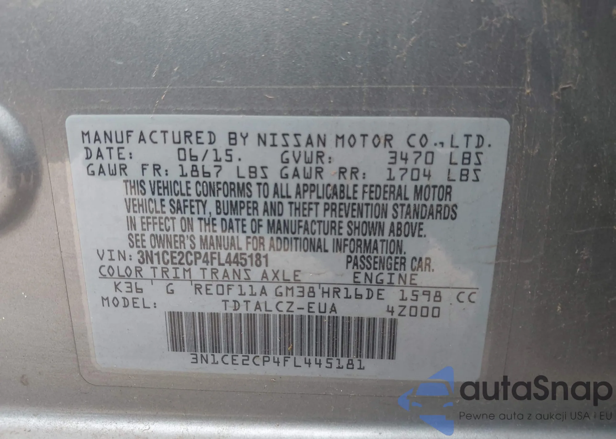 • VIN 4T1B11HK6JU116634